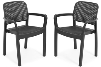 Zestaw ogrodowy dla 6 osób: sześć krzeseł SAMANNA i prostokątny stół MELODY, komplet z detalami imitującymi rattan w kolorze grafitowym. Ogród, taras czy balkon to idealne miejsce na efektywne zajęcia na świeżym powietrzu. Plastikowe meble doskonale sprawdzają się na otwartych tarasach bez zadaszenia, ponieważ są bardzo wytrzymałe, dzięki czemu nie trzeba ich chować przed deszczem czy słońcem. Stół i krzesła to połączenie wygody i funkcjonalności, unikalny kształt pozwala stworzyć wymarzoną aranżację w stylu boho, skandynawii i prowansji. Meble w kolorze grafitowym pięknie prezentują się na tle zielonej trawy oraz z barwami natury. Żebrowane siedziska i oparcia krzeseł nadają lekkości i są bardzo praktyczne w użytkowaniu, ponieważ woda swobodnie spływa i nie zatrzymuje się na meblach. Wygodne siedzisko i oparcie wyprofilowane są zgodnie z naturalnym kształtem kręgosłupa.