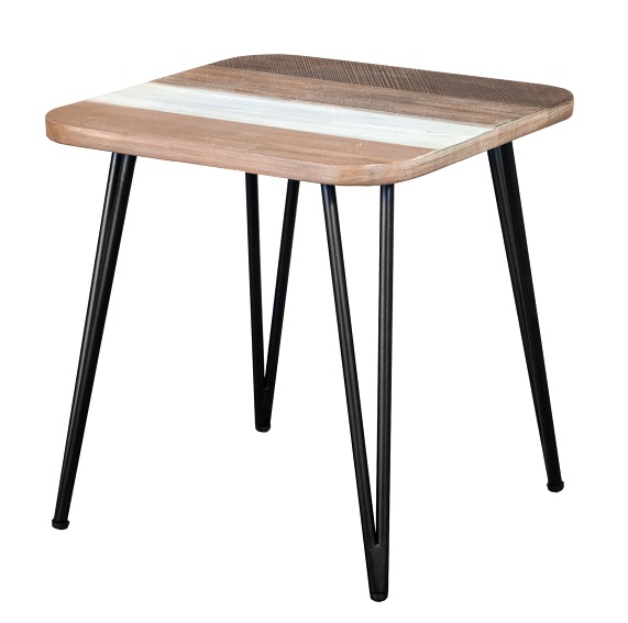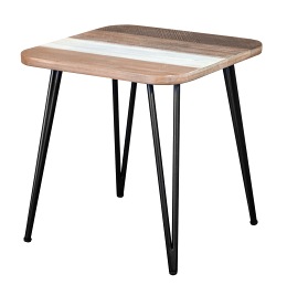 Połączenie stylu industrialnego z rustykalnym... Czy to może się udać? Jeśli spodobał Ci się zamieszczony na zdjęciu stolik, to wygląda na to, że tak! Na jego metalowych, charakterystycznie wygiętych nogach oparto protokątny blat. Wykonano go z płyty MDF i okleiny, która okala zaokrągląne brzegi blatu. Różnobarwne odcienie desek widocznych na powierzchni zawdzięczyć można wysokiej jakości drewnu akacji. Do dekoracji nie potrzeba już nic więcej. Jeśli zaś potrzebujesz czegoś większego, sprawdź ławę ADESSO L06.