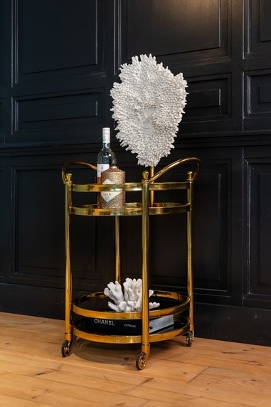 - Elegancki okrągły barek na kółkach Hendricks marki Richmond Interiors wykonany jest ze stali nierdzewnej oraz szkła.