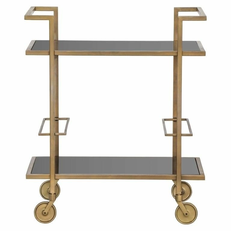 Barek XO marki Richmond Interiors to kwintesencja elegancji i nowoczesności. Jego szczotkowana złota podstawa harmonijnie łączy się z ciemnoszklanym blatem, tworząc luksusowy akcent w Twoim wnętrzu. Dzięki dwóm praktycznym półkom barek ten nie tylko zachwyca designem, ale także oferuje wygodę użytkowania. Doskonale sprawdzi się w salonie czy jadalni, stając się stylowym dodatkiem, który wpisuje się w najnowsze trendy wnętrzarskie.