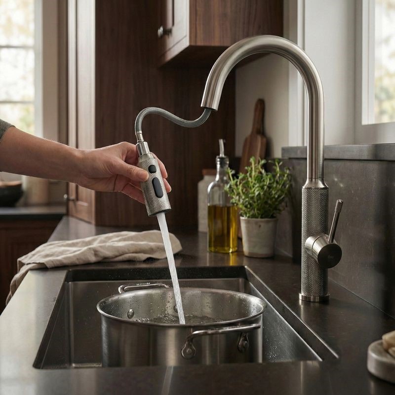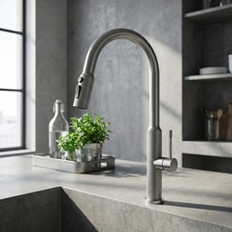 Bateria kuchenna MASTER to funkcjonalne i estetyczne rozwiązanie do każdej kuchni. Jej nowoczesny design sprawia, że doskonale komponuje się zarówno z klasycznymi, jak i nowoczesnymi aranżacjami. Solidna konstrukcja oraz wysokiej jakości materiały zapewniają trwałość i odporność na intensywne użytkowanie. Ergonomiczny uchwyt umożliwia wygodną regulację temperatury i strumienia wody, co zwiększa komfort codziennych czynności kuchennych.