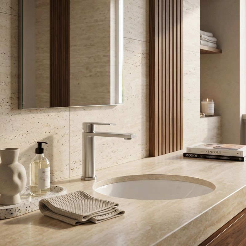 Bateria umywalkowa HUNTER to połączenie nowoczesnej estetyki i funkcjonalności. Prosta, elegancka forma sprawia, że doskonale wpisuje się w aktualne trendy aranżacyjne. Wysokiej jakości powłoka zapewnia odporność na zarysowania, wilgoć oraz codzienne użytkowanie. Bateria umożliwia płynną i precyzyjną regulację temperatury oraz strumienia wody, co przekłada się na wygodę użytkowania. Dostępność wersji niskiej i wysokiej pozwala dopasować produkt do różnych typów umywalek.