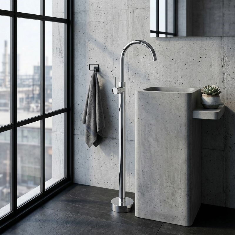 Bateria umywalkowa podłogowa LUNGO to wyjątkowe rozwiązanie do nowoczesnych łazienek z umywalkami wolnostojącymi. Jej efektowna forma przyciąga uwagę i nadaje wnętrzu luksusowego charakteru. Solidna konstrukcja zapewnia trwałość oraz stabilność.
