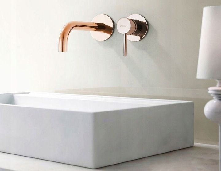 Bateria Umywalkowa Podtynkowa LUNGO LONG + Box Różowe Złoto