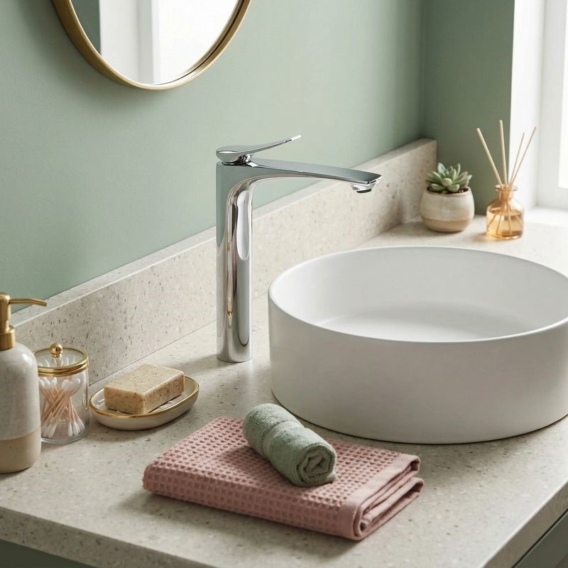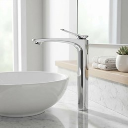 Bateria umywalkowa VISION w wersji wysokiej to eleganckie rozwiązanie do nowoczesnych łazienek. Chromowane wykończenie nadaje jej ponadczasowego charakteru, który doskonale komponuje się z różnymi aranżacjami. Wysoka konstrukcja sprawia, że idealnie pasuje do umywalek nablatowych. Solidne materiały oraz staranne wykonanie gwarantują trwałość i odporność na wilgoć. Precyzyjny mechanizm zapewnia wygodną i płynną regulację wody.