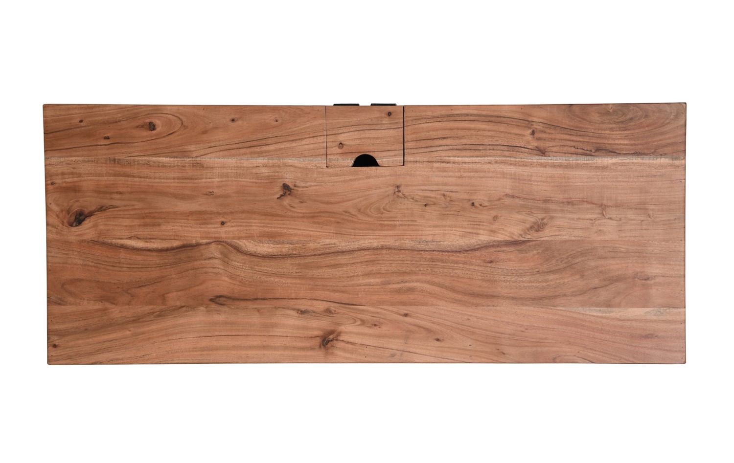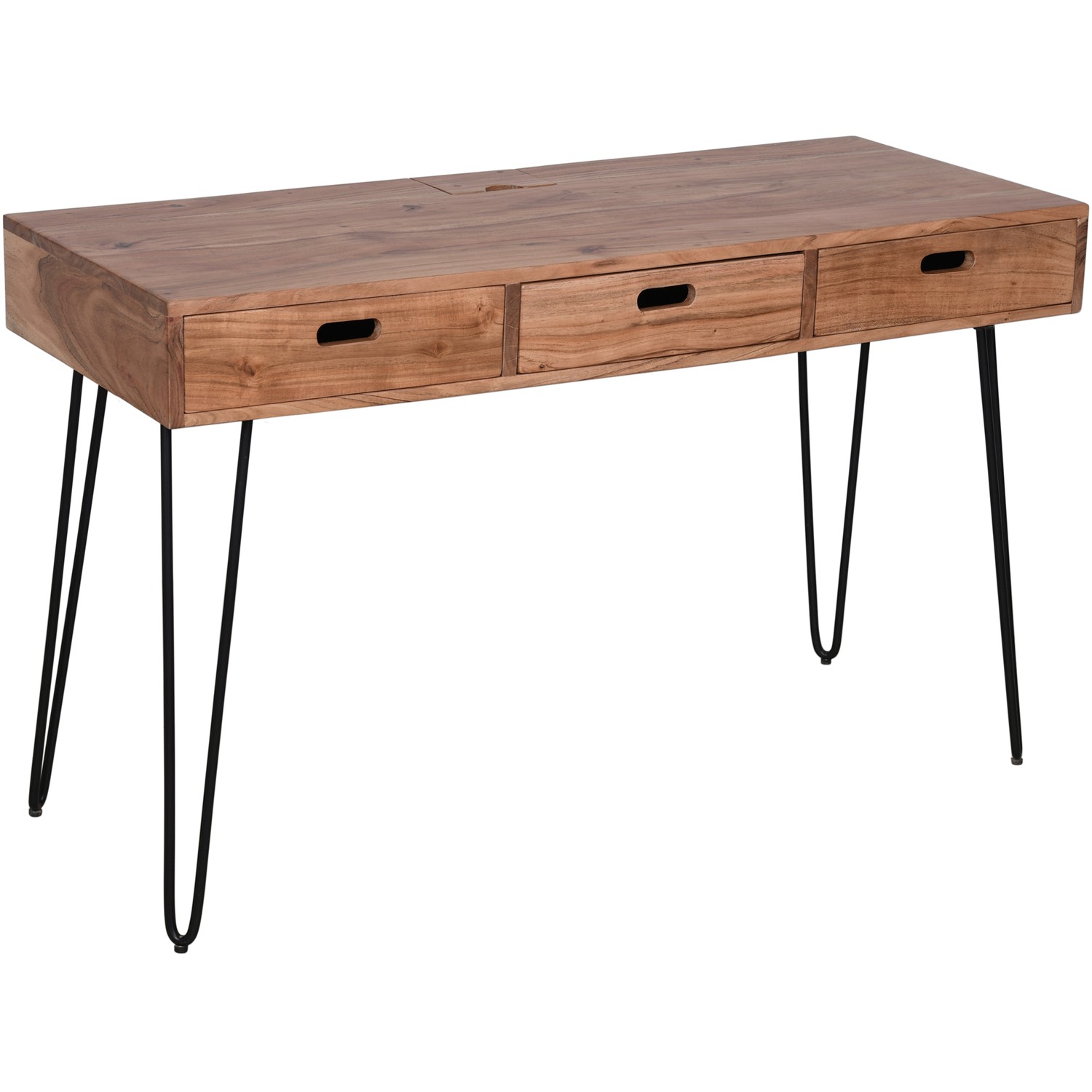 Biurko w stylu loftowym to nie tylko mebel do pracy, ale także wyraz surowego piękna i funkcjonalnej elegancji. Jego naturalne drewno emanuje ciepłem i autentycznością, tworząc inspirujące miejsce do pracy czy nauki. Funkcjonalne szuflady, harmonijnie wkomponowane w design, nie tylko dodają charakteru, ale również zapewniają praktyczne miejsce na przechowywanie. To idealne rozwiązanie dla tych, którzy cenią porządek w miejscu pracy. Wbudowane gniazdo i porty USB to nowoczesne udogodnienie, które sprawia, że korzystanie z elektroniki staje się łatwiejsze niż kiedykolwiek wcześniej. Teraz ładowanie urządzeń czy podłączanie elektroniki do komputera odbywa się płynnie i bezproblemowo.