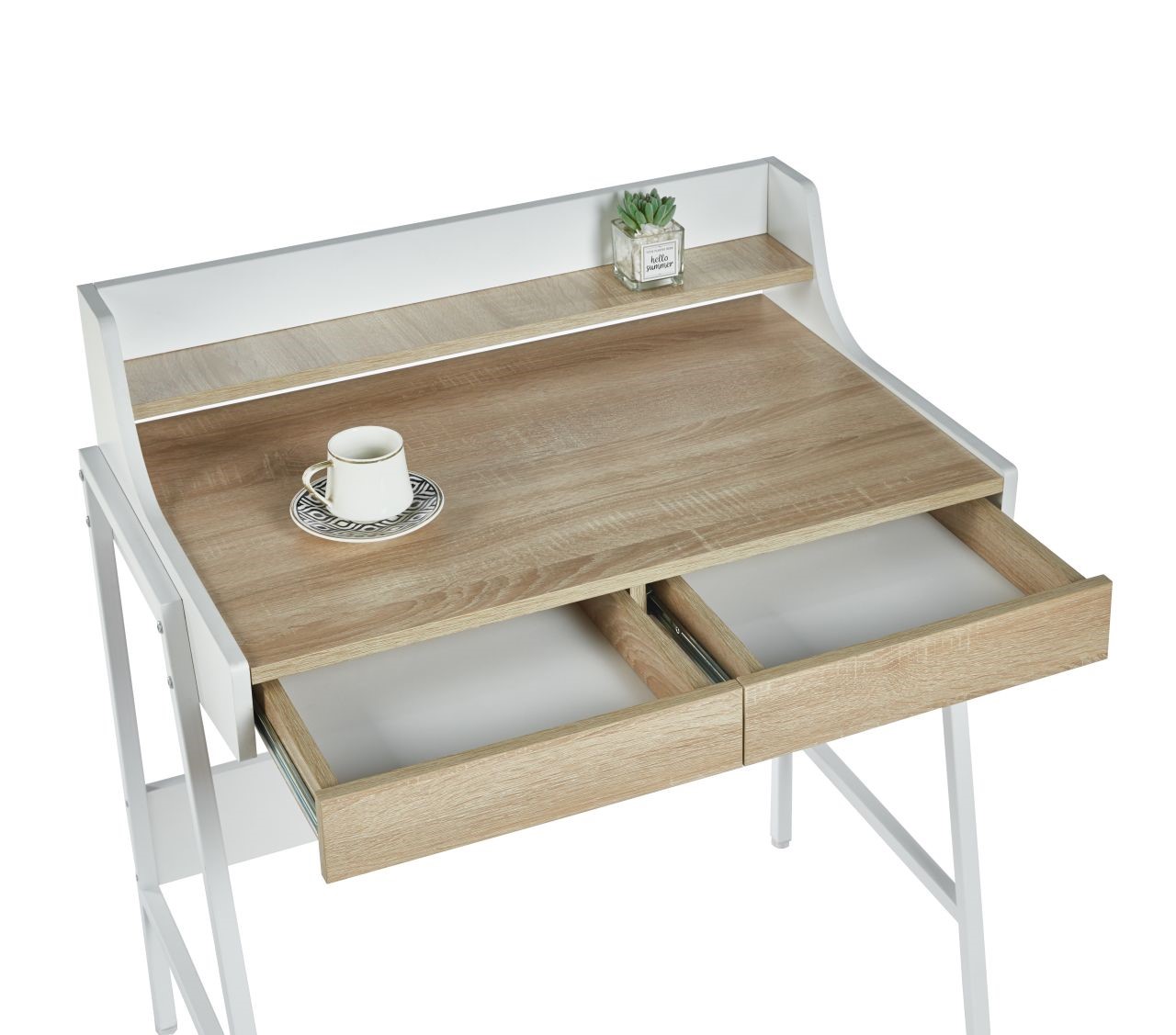 Prezentowane biurko to stylowe i funkcjonalne rozwiązanie, które doskonale sprawdzi się zarówno w nowoczesnym, jak i klasycznym wnętrzu. Wykonane z wysokiej jakości materiałów, biurko łączy minimalistyczny design z praktycznymi rozwiązaniami, zapewniając komfort pracy i organizacji przestrzeni. Solidna konstrukcja opiera się na metalowych nogach, które nadają mu stabilność, a przestronny blat zapewnia wystarczającą ilość miejsca na komputer, dokumenty i inne niezbędne akcesoria. Jego nowoczesny wygląd i funkcjonalność sprawiają, że jest to doskonały wybór dla osób ceniących sobie prostotę i elegancję.