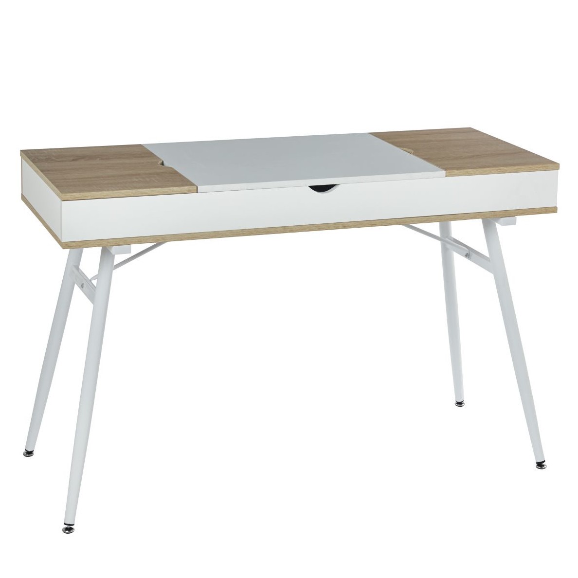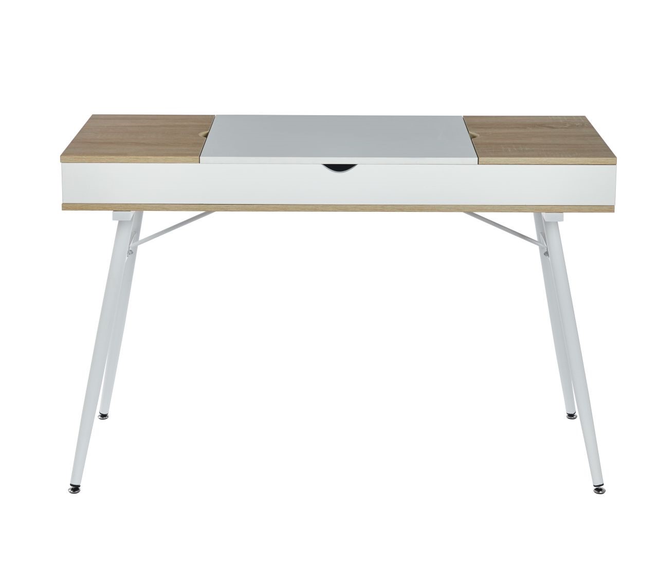 Prezentowane biurko to stylowe i funkcjonalne rozwiązanie, które doskonale sprawdzi się zarówno w nowoczesnym, jak i klasycznym wnętrzu. Wykonane z wysokiej jakości materiałów, biurko łączy minimalistyczny design z praktycznymi rozwiązaniami, zapewniając komfort pracy i organizacji przestrzeni. Solidna konstrukcja opiera się na metalowych nogach, które nadają mu stabilność, a przestronny blat zapewnia wystarczającą ilość miejsca na komputer, dokumenty i inne niezbędne akcesoria. Jego nowoczesny wygląd i funkcjonalność sprawiają, że jest to doskonały wybór dla osób ceniących sobie prostotę i elegancję.