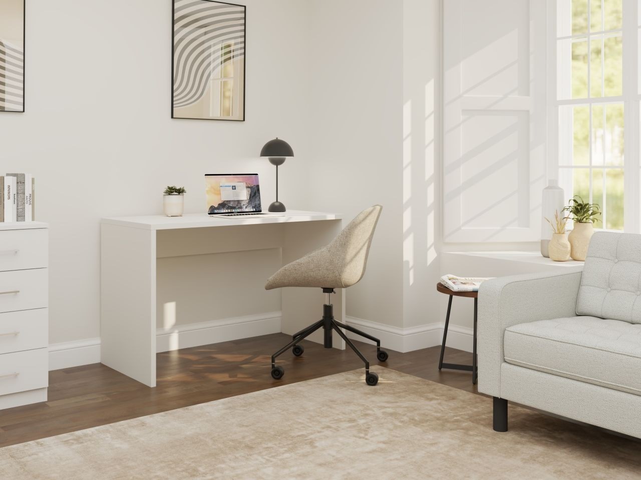 Prezentowane biurko to stylowe i funkcjonalne rozwiązanie, które doskonale sprawdzi się zarówno w nowoczesnym, jak i klasycznym wnętrzu. Wykonane z wysokiej jakości materiałów, biurko łączy minimalistyczny design z praktycznymi rozwiązaniami, zapewniając komfort pracy i organizacji przestrzeni. Solidna konstrukcja opiera się na metalowych nogach, które nadają mu stabilność, a przestronny blat zapewnia wystarczającą ilość miejsca na komputer, dokumenty i inne niezbędne akcesoria. Jego nowoczesny wygląd i funkcjonalność sprawiają, że jest to doskonały wybór dla osób ceniących sobie prostotę i elegancję.