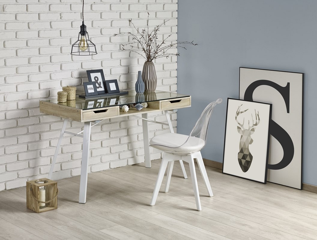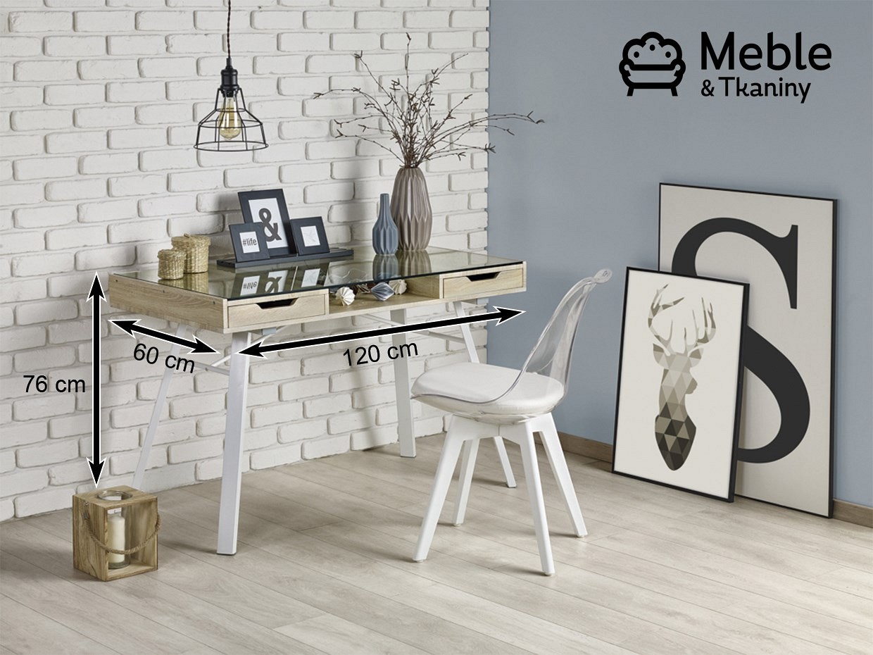 Biurko oferujemy w kolorze dąb-sonoma z białym.