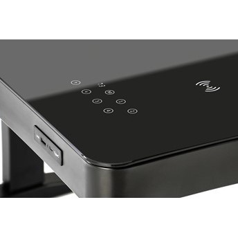 Biurko zostało wyposażone w innowacyjny ekran dotykowy, co umożliwia wygodne sterowanie zintegrowanymi funkcjami. Ponadto, funkcja ładowania bezprzewodowego pozwala na efektywne ładowanie smartfonu lub innych urządzeń kompatybilnych z technologią bezprzewodową, bez konieczności korzystania z kabli.