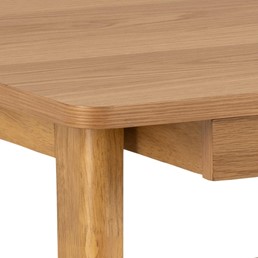Solidna podstawa z drewna kauczukowego barwionego na kolor dębu zapewnia stabilność i trwałość mebla. Biurko łączy w sobie styl japandi, który charakteryzuje się prostotą i minimalizmem, z funkcjonalnością, co czyni je idealnym wyborem do mniejszych przestrzeni pracy.