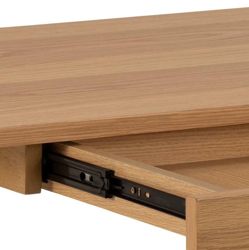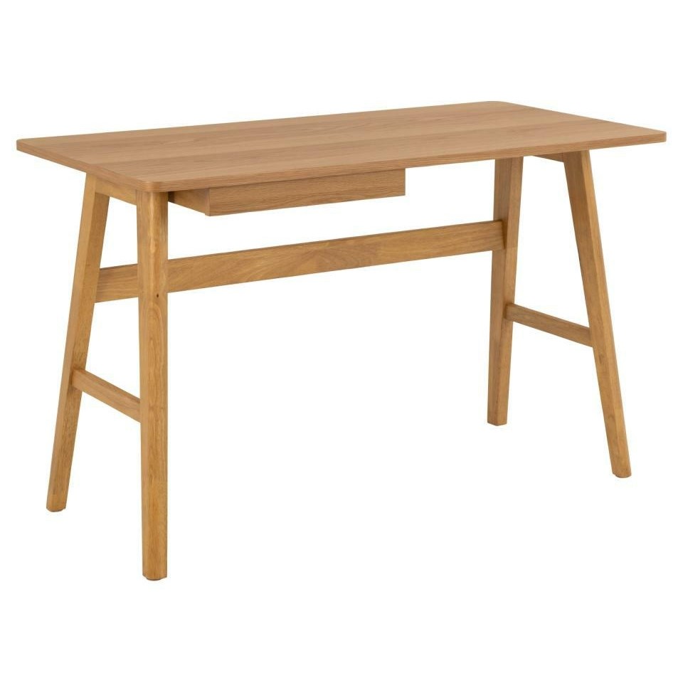 Biurko BARNETT Dąb to eleganckie i funkcjonalne biurko, które doskonale sprawdzi się w każdym nowoczesnym biurze. Jego prostokątny blat wykonany jest z płyty MDF pokrytej fornirem dębowym, co nadaje mu naturalny i ciepły wygląd. Dodatkowo, biurko wyposażone jest w małą, praktyczną szufladę po prawej stronie, która pozwala na utrzymanie porządku i organizację niezbędnych przyborów biurowych.