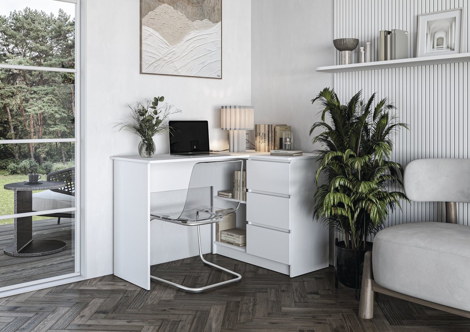Biurko BEGA to nowoczesny i funkcjonalny mebel, który doskonale sprawdzi się zarówno w biurze, jak i w domowym gabinecie. Jego minimalistyczny design w połączeniu z elegancką kolorystyką nadaje wnętrzu stylowego charakteru. Wykonane z wysokiej jakości materiałów, jest trwałe i odporne na codzienne użytkowanie. Przestronny blat zapewnia wygodne miejsce do pracy, nauki lub organizacji dokumentów. Biurko wyposażone jest w praktyczne szuflady i półki, które ułatwiają przechowywanie niezbędnych akcesoriów. Stabilna konstrukcja gwarantuje komfort i bezpieczeństwo użytkowania. Dzięki uniwersalnej formie pasuje do różnych aranżacji wnętrz, od klasycznych po nowoczesne.
