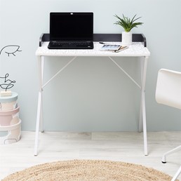 Biurko Brice w kolorze niebieskim lastryko to nowoczesna i stylowa mebel, która doda charakteru każdemu wnętrzu. Wykonane z wysokiej jakości materiałów, zapewnia trwałość i estetykę. Niebieski wzór lastryko wprowadza wyjątkowy akcent, czyniąc biurko nie tylko funkcjonalnym, ale także dekoracyjnym elementem przestrzeni. Biurko ma wygodne miejsce do pracy oraz półki na przechowywanie, co ułatwia organizację. Jego minimalistyczny design idealnie wpisuje się w nowoczesne wnętrza. Biurko Brice to idealny wybór dla osób ceniących sobie styl i funkcjonalność w jednym.