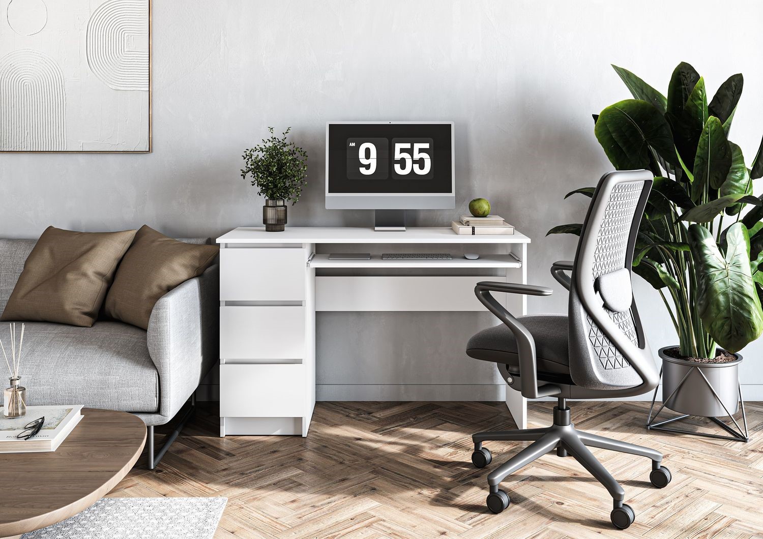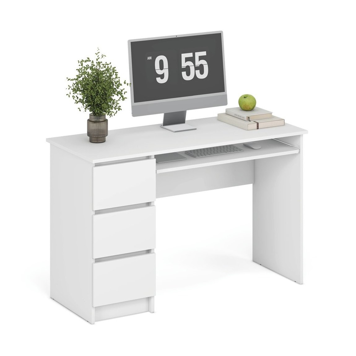 Biurko CINO to nowoczesny i funkcjonalny mebel, który doskonale sprawdzi się zarówno w biurze, jak i w domowym gabinecie. Jego minimalistyczny design w połączeniu z elegancką kolorystyką nadaje wnętrzu stylowego charakteru. Wykonane z wysokiej jakości materiałów, jest trwałe i odporne na codzienne użytkowanie. Przestronny blat zapewnia wygodne miejsce do pracy, nauki lub organizacji dokumentów. Biurko wyposażone jest w praktyczne szuflady, które ułatwiają przechowywanie niezbędnych akcesoriów. Stabilna konstrukcja gwarantuje komfort i bezpieczeństwo użytkowania. Dzięki uniwersalnej formie pasuje do różnych aranżacji wnętrz, od klasycznych po nowoczesne.