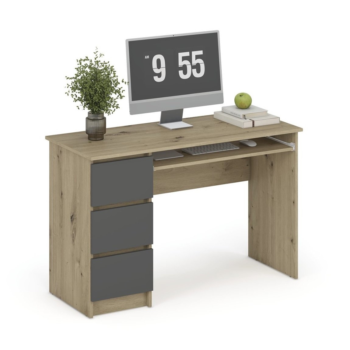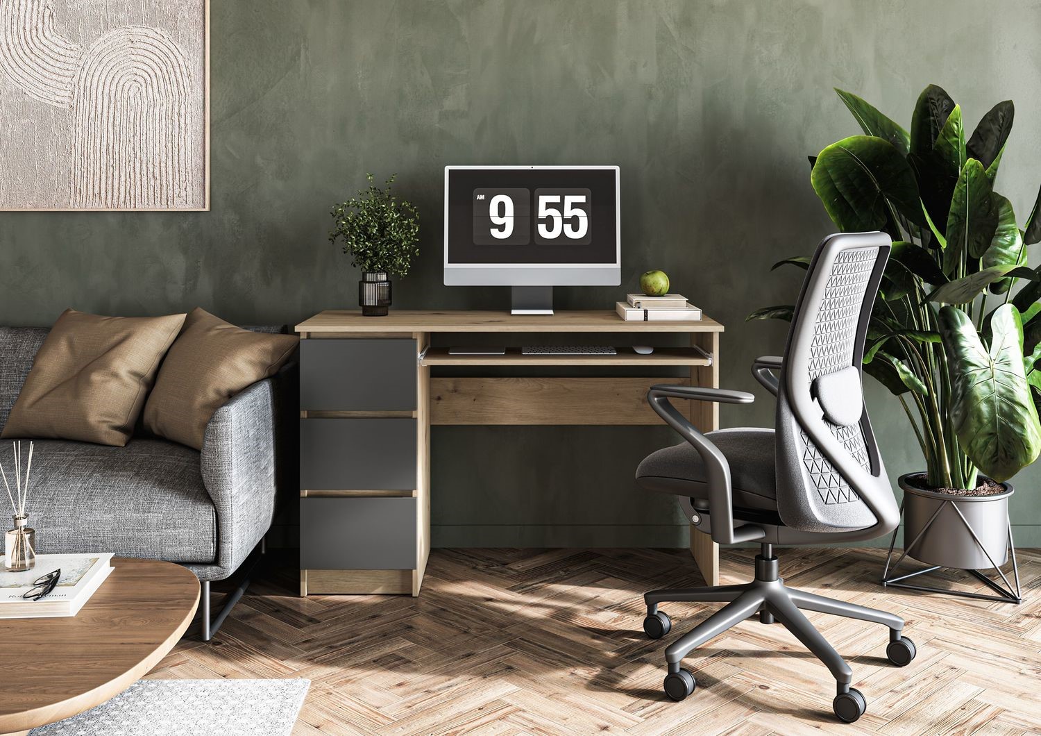 Biurko CINO to nowoczesny i funkcjonalny mebel, który doskonale sprawdzi się zarówno w biurze, jak i w domowym gabinecie. Jego minimalistyczny design w połączeniu z elegancką kolorystyką nadaje wnętrzu stylowego charakteru. Wykonane z wysokiej jakości materiałów, jest trwałe i odporne na codzienne użytkowanie. Przestronny blat zapewnia wygodne miejsce do pracy, nauki lub organizacji dokumentów. Biurko wyposażone jest w praktyczne szuflady, które ułatwiają przechowywanie niezbędnych akcesoriów. Stabilna konstrukcja gwarantuje komfort i bezpieczeństwo użytkowania. Dzięki uniwersalnej formie pasuje do różnych aranżacji wnętrz, od klasycznych po nowoczesne.