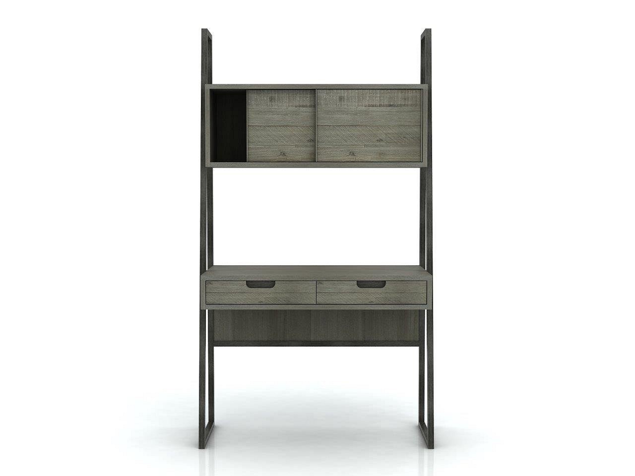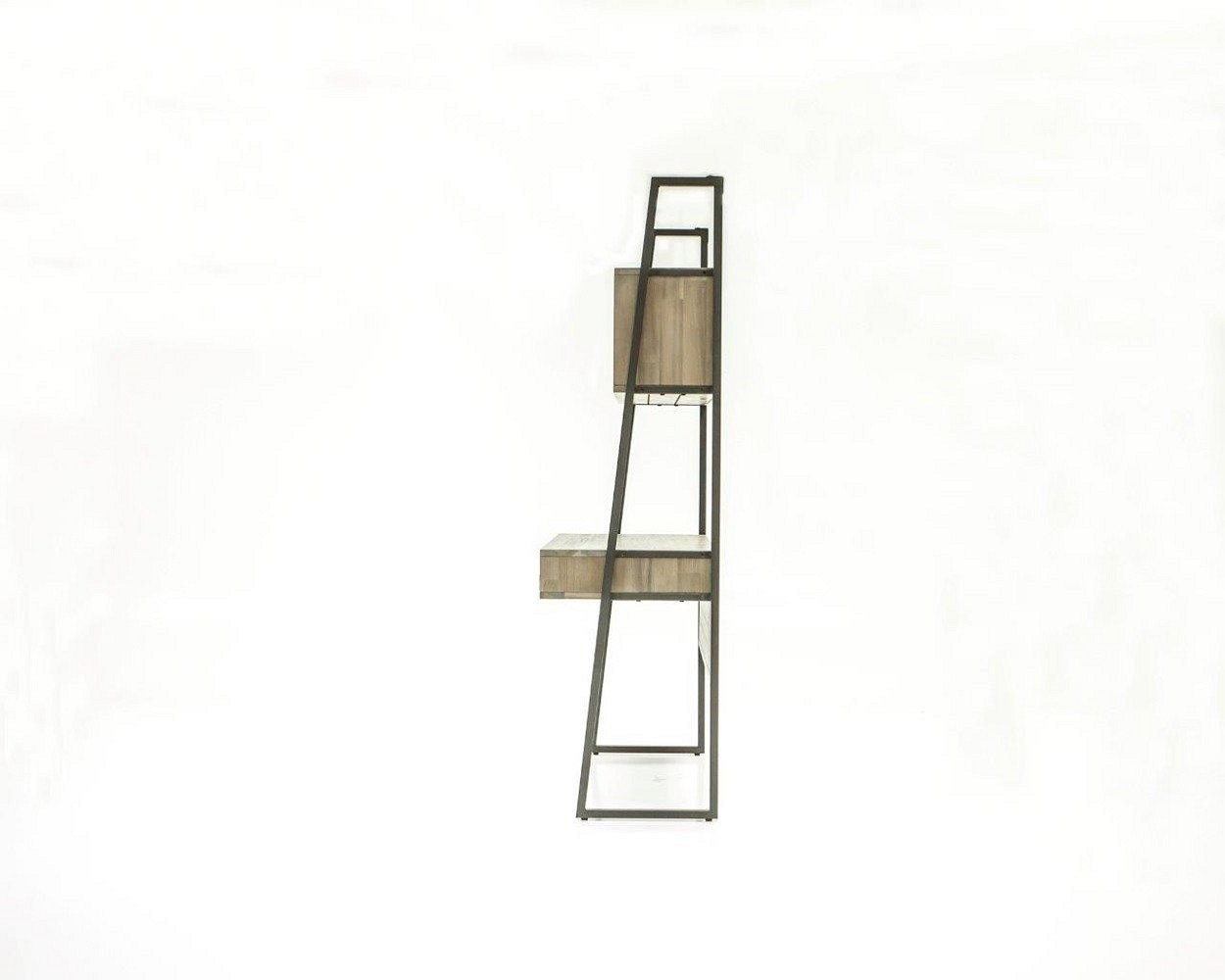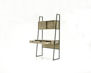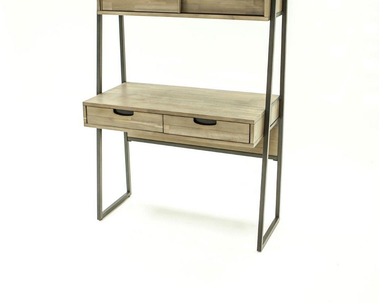 Oryginalny całkowicie drewniany stół w stylu loft, wykonany z wysokiej jakości czesanego egzotycznego drewna akacjowego, z honowanymi uchwytami. Proste, grafitowe nogi ze szczotkowanego metalu w ciepłych tonach tworzą część ciała całego ciała. Detale frontowe i boczne wykonane są z drewna w kolorze piaskowym, tworząc niejednorodną strukturę. Produkt posiada szafkę górną z dwojgiem przesuwanych drzwi oraz dwiema szufladami wyłożonymi aksamitem.