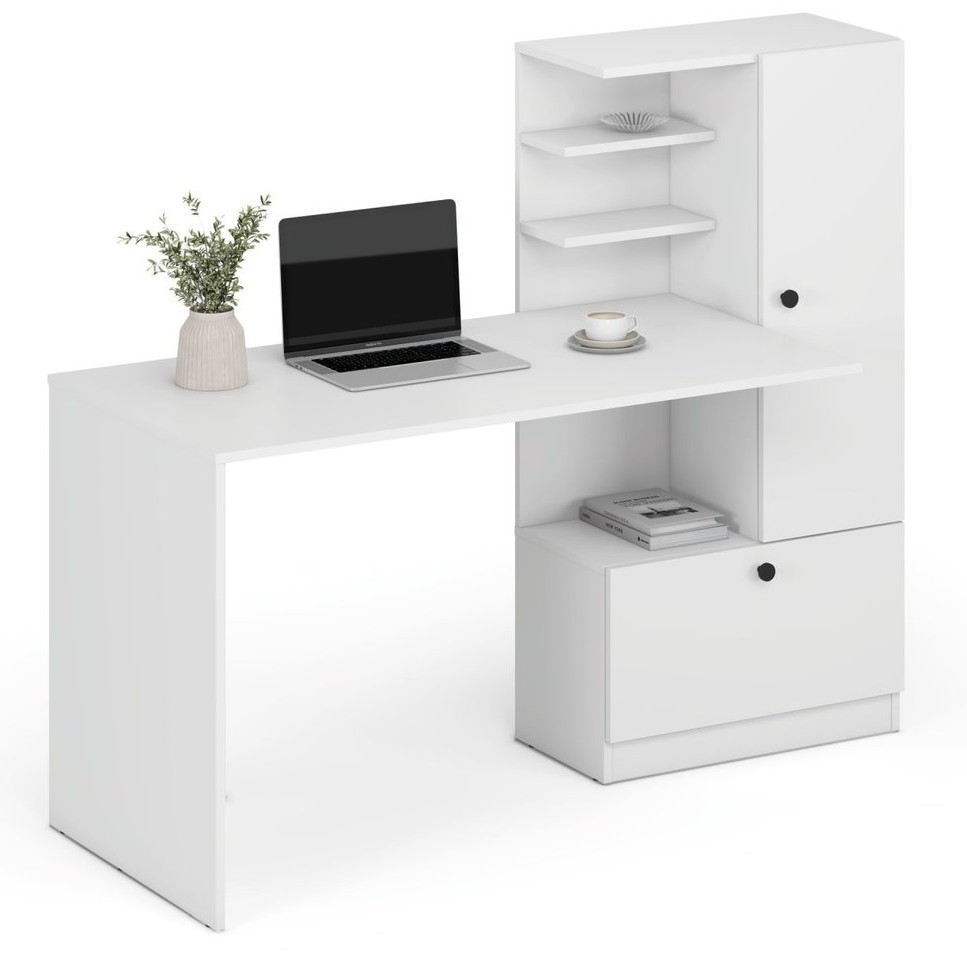 Prezentowane biurko to nowoczesny i funkcjonalny mebel, który doskonale sprawdzi się zarówno w biurze, jak i w domowym gabinecie. Jego minimalistyczny design w połączeniu z elegancką kolorystyką nadaje wnętrzu stylowego charakteru. Wykonane z wysokiej jakości materiałów, jest trwałe i odporne na codzienne użytkowanie. Przestronny blat zapewnia wygodne miejsce do pracy, nauki lub organizacji dokumentów. Biurko wyposażone jest w praktyczne szuflady, które ułatwiają przechowywanie niezbędnych akcesoriów. Stabilna konstrukcja gwarantuje komfort i bezpieczeństwo użytkowania. Dzięki uniwersalnej formie pasuje do różnych aranżacji wnętrz, od klasycznych po nowoczesne.