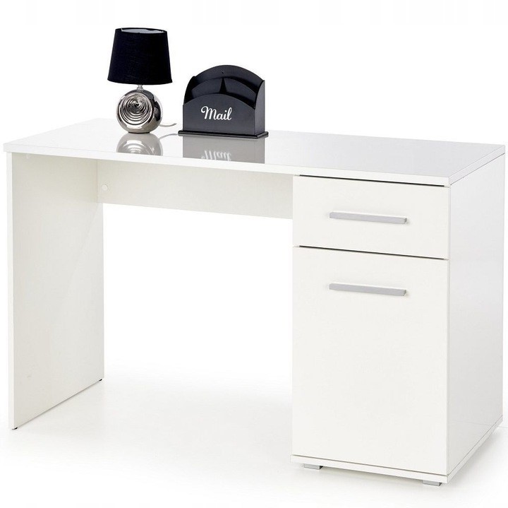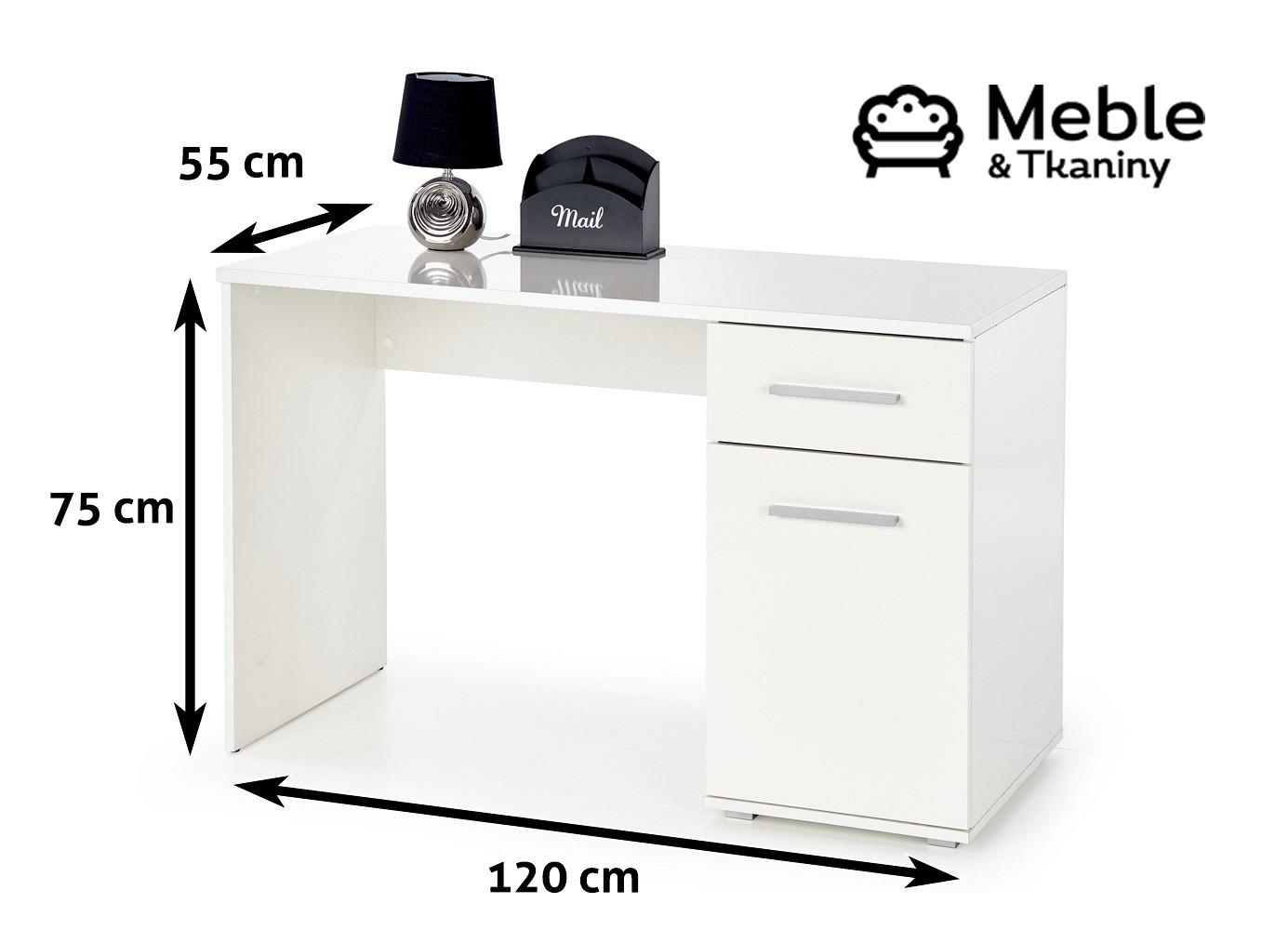 Biurko Lima polecane do pokojów urządzonych w stylu skandynawskim bądź glamour. Do jego produkcji użyto płyty meblowej laminowanej o wysokim połysku. Dzięki zabezpieczeniu krawędzi obrzeżami ABS wykazuje dużą odporność na obicia bądź odklejanie się materiału.Model dostępny w trzech kolorach do wyboru: dąb sonoma, biały (wysoki połysk) lub w ich połączeniu.