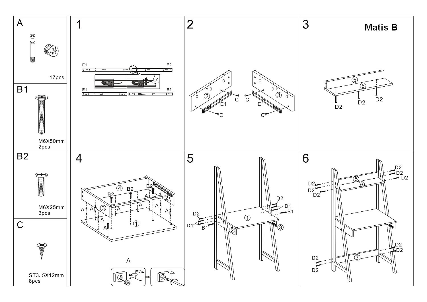 Biurko NARVIK B-1 Biały/Dąb SonomaBiurko NARVIK B1 Czarny/Dąb Sonoma