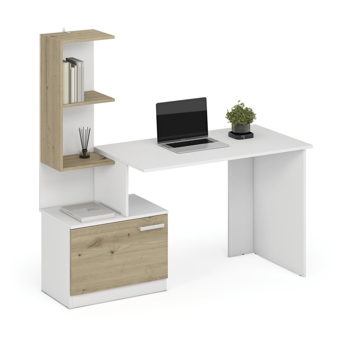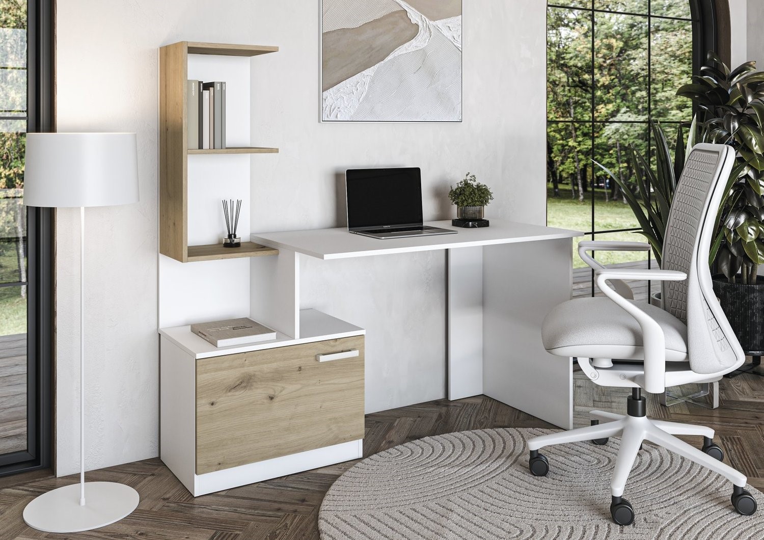 Biurko MISO to nowoczesny i funkcjonalny mebel, który doskonale sprawdzi się zarówno w biurze, jak i w domowym gabinecie. Jego minimalistyczny design w połączeniu z elegancką kolorystyką nadaje wnętrzu stylowego charakteru. Wykonane z wysokiej jakości materiałów, jest trwałe i odporne na codzienne użytkowanie. Przestronny blat zapewnia wygodne miejsce do pracy, nauki lub organizacji dokumentów. Biurko wyposażone jest w praktyczne szuflady, które ułatwiają przechowywanie niezbędnych akcesoriów. Stabilna konstrukcja gwarantuje komfort i bezpieczeństwo użytkowania. Dzięki uniwersalnej formie pasuje do różnych aranżacji wnętrz, od klasycznych po nowoczesne.