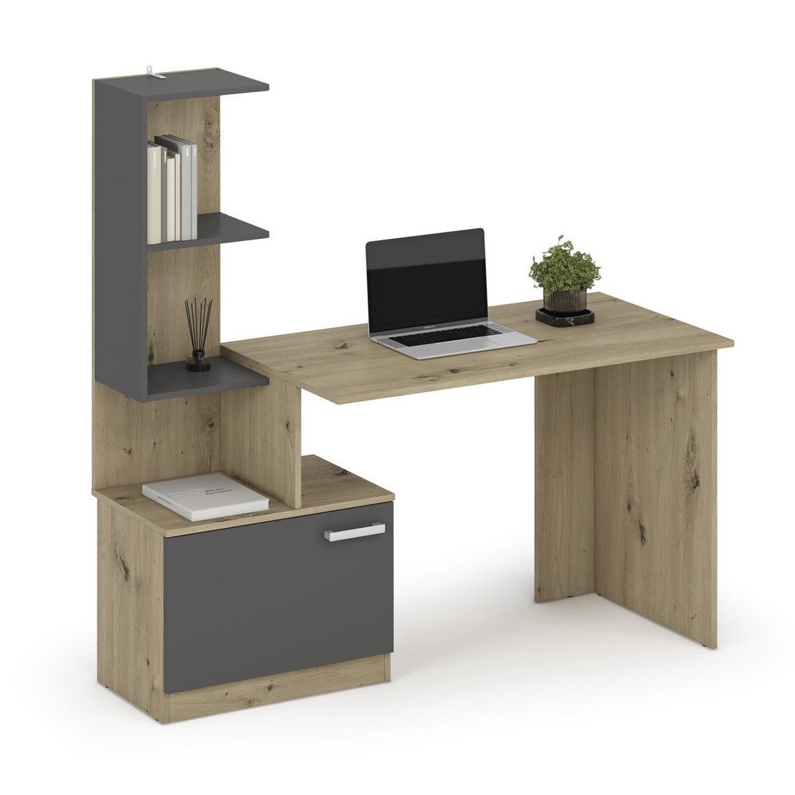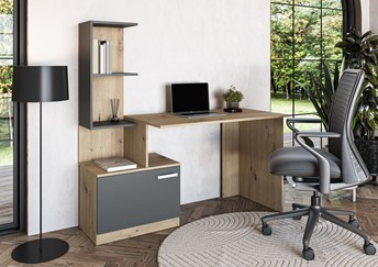 Biurko MISO to nowoczesny i funkcjonalny mebel, który doskonale sprawdzi się zarówno w biurze, jak i w domowym gabinecie. Jego minimalistyczny design w połączeniu z elegancką kolorystyką nadaje wnętrzu stylowego charakteru. Wykonane z wysokiej jakości materiałów, jest trwałe i odporne na codzienne użytkowanie. Przestronny blat zapewnia wygodne miejsce do pracy, nauki lub organizacji dokumentów. Biurko wyposażone jest w praktyczne szuflady, które ułatwiają przechowywanie niezbędnych akcesoriów. Stabilna konstrukcja gwarantuje komfort i bezpieczeństwo użytkowania. Dzięki uniwersalnej formie pasuje do różnych aranżacji wnętrz, od klasycznych po nowoczesne.