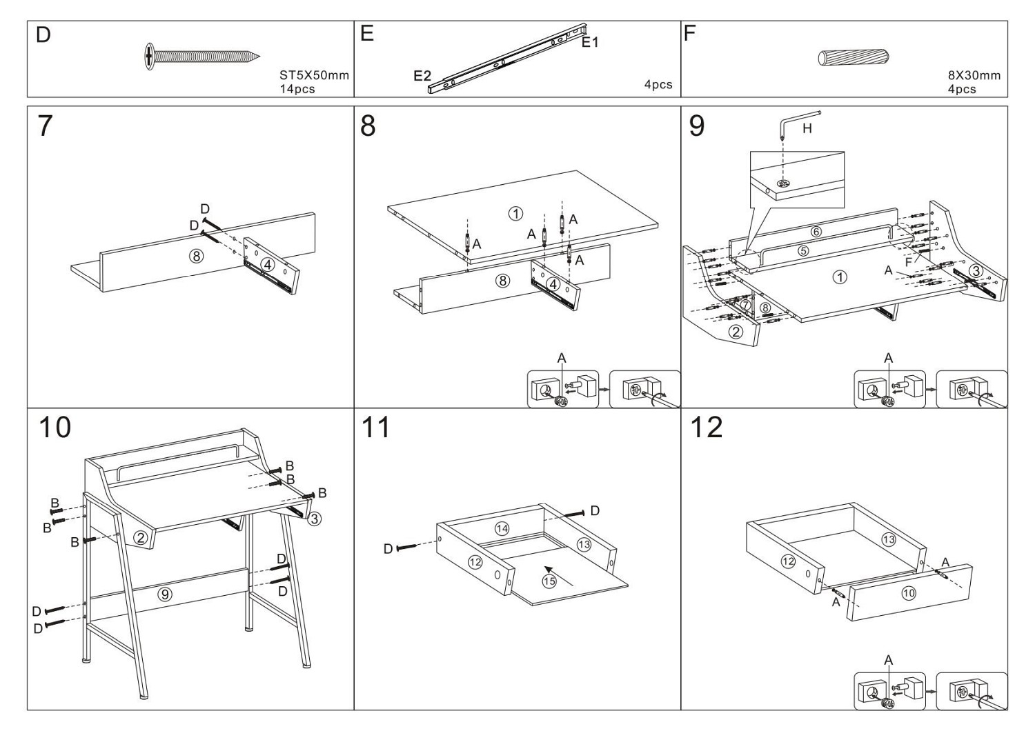 Stelaż biurka wykonany jest z metalu natomiast blat, półki oraz szuflady wykonane są z płyty MDF.