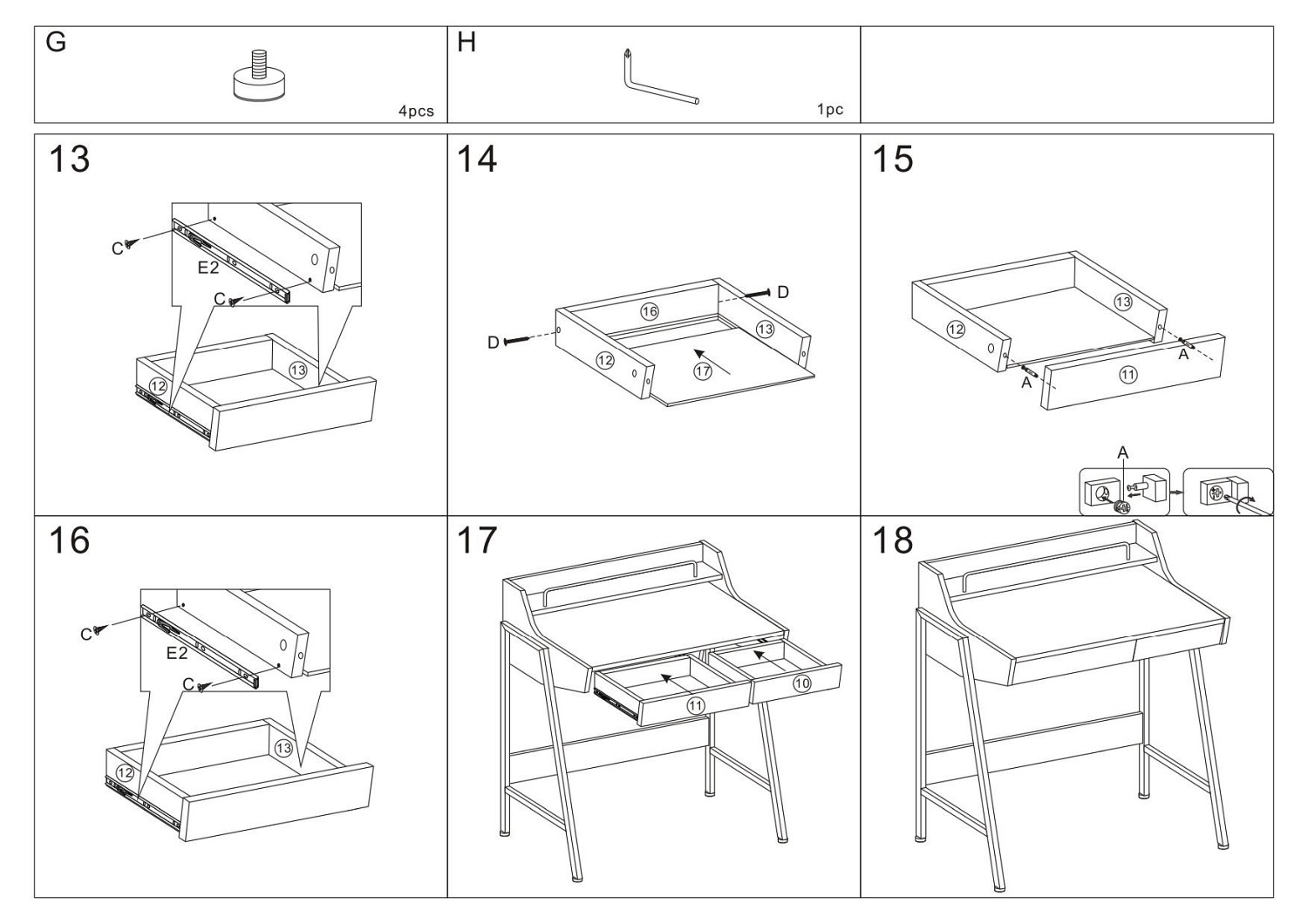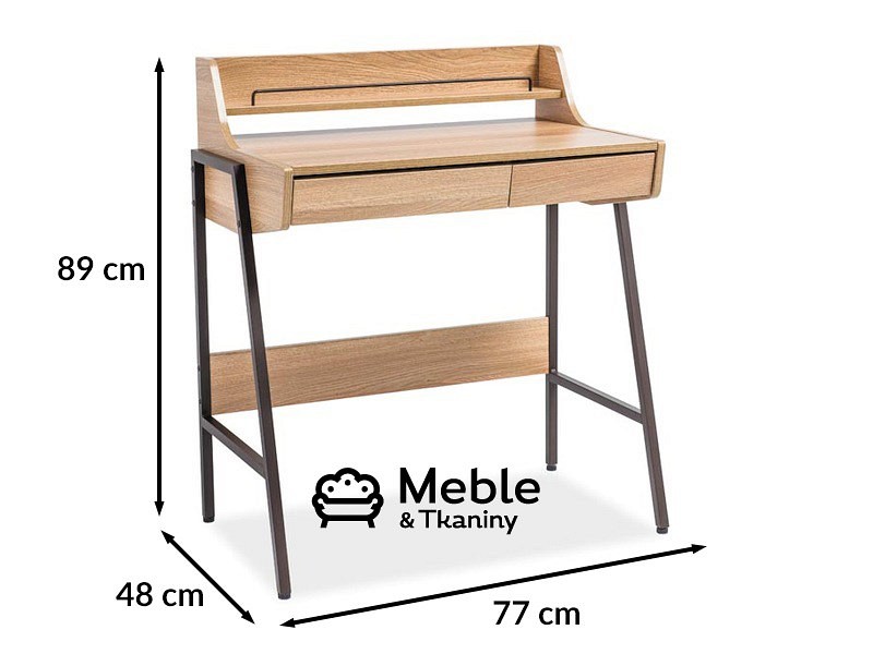 Posiada obszerny blat, dwie szuflady zapewniające natychmiastowy dostęp do potrzebnych materiałów oraz dodatkowe półki, któreumieszczone zostały ponad blatem biurka, dzięki czemu nie zabierają przestrzeni roboczej.