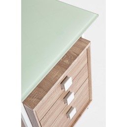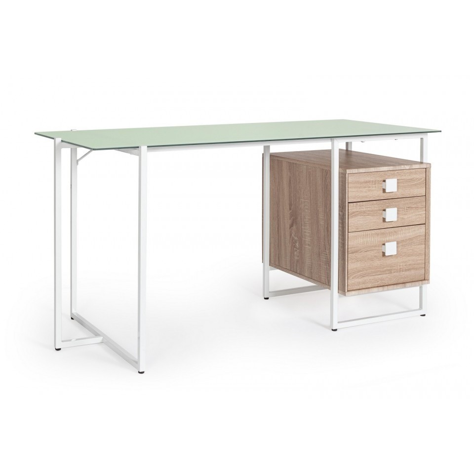 Prezentowane biurko to niezbędny element wyposażenia każdego domu i biura, który łączy praktyczność z estetycznym wyglądem. Solidna konstrukcja zapewnia stabilność, a odpowiednio dobrane materiały gwarantują trwałość i komfort użytkowania. Dzięki przemyślanemu projektowi biurko oferuje wygodną przestrzeń roboczą oraz możliwość przechowywania niezbędnych akcesoriów, co pomaga w utrzymaniu porządku. Uniwersalny design sprawia, że mebel doskonale wpisuje się w różne aranżacje – od nowoczesnych, przez industrialne, aż po klasyczne wnętrza. To funkcjonalne rozwiązanie dla osób, które cenią sobie wygodę, organizację oraz estetykę.
