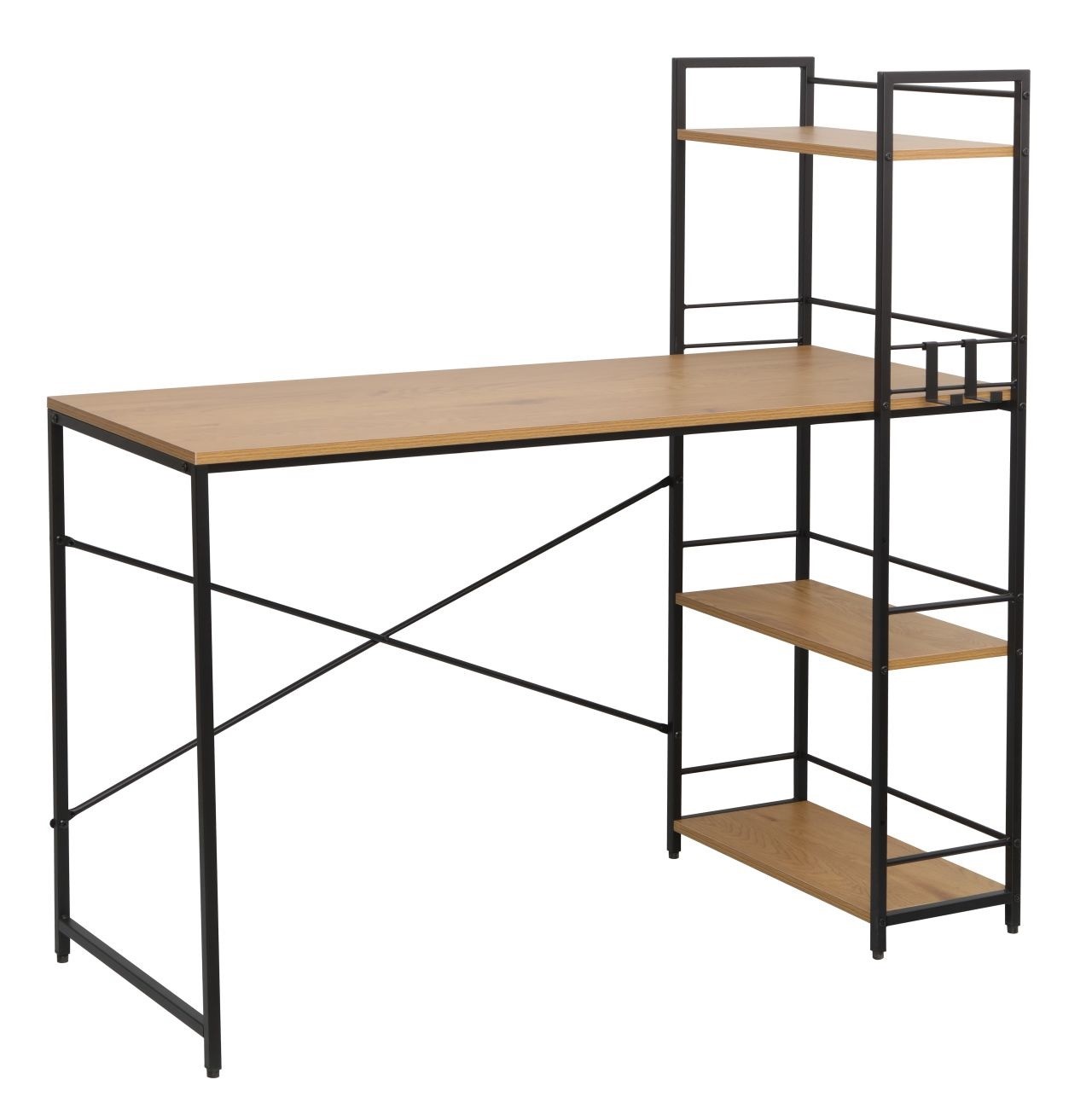 Biurko z regałem to praktyczne i stylowe rozwiązanie do domowego biura, pokoju młodzieżowego lub gabinetu. Funkcjonalne połączenie blatu roboczego z otwartym regałem pozwala na wygodne przechowywanie książek, dokumentów i akcesoriów biurowych. Przemyślany układ półek ułatwia organizację przestrzeni i utrzymanie porządku. Szeroki blat zapewnia wystarczającą powierzchnię do pracy z laptopem, nauki lub pisania. Konstrukcja mebla wykonana jest z trwałych materiałów, odpornych na codzienne użytkowanie.