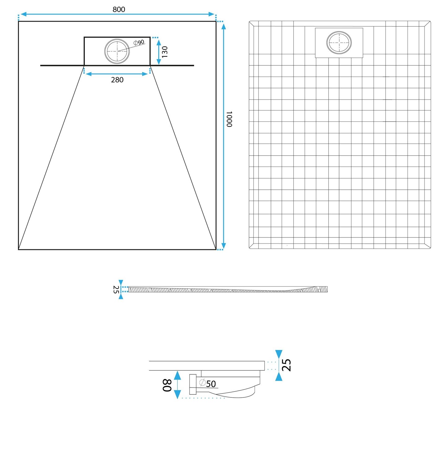 Brodzik Prysznicowy BAZALT 80x100 Czarny