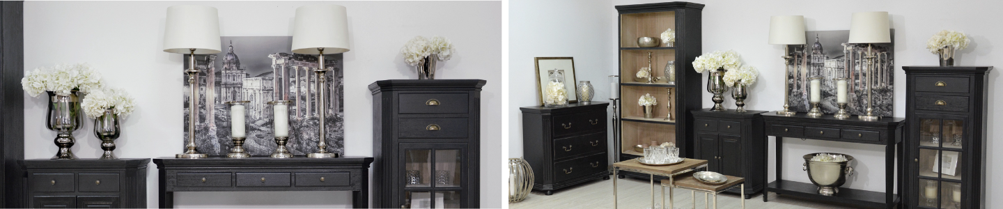 Kolekcja Cesena charakteryzuje się głęboką czernią wykończenia, metalowymi uchwytami w kolorze postarzanego złota i klasycznymi bryłami. Czyste linie, idealne proporcje, stylowe detale to kolejne atuty witryn, komód, a także regałów z tej serii. Te meble gabinetowe świetnie sprawdzą się w prestiżowych miejscach - kancelarii, biurze zarządu lub wszędzie tam, gdzie potrzebny jest szyk i elegancja.