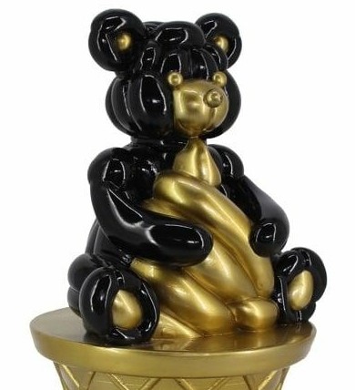 - Oryginalna figura misia na złotym wafelku, inspirowana balonową rzeźbą