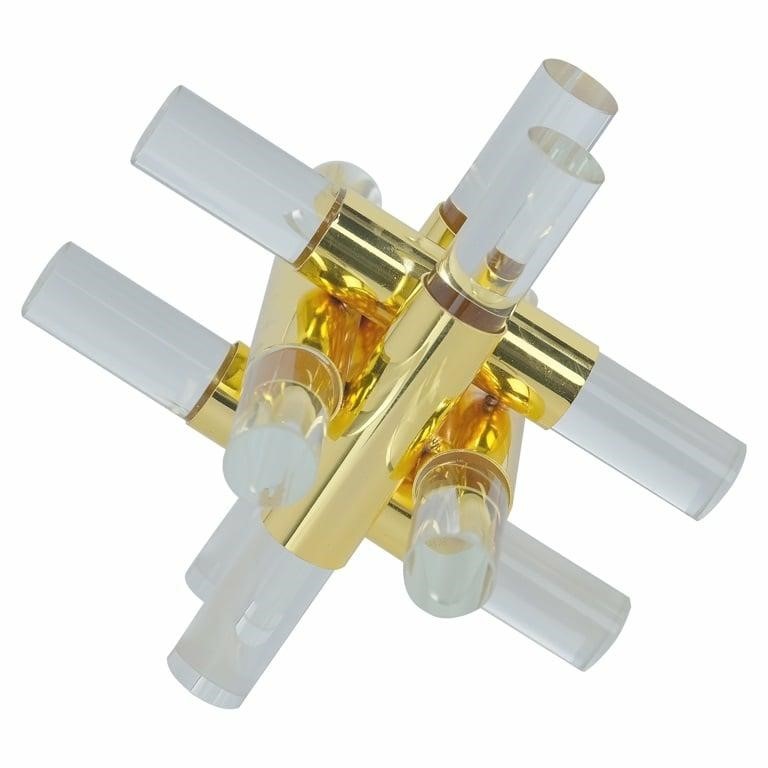 - Transparentne elementy kontrastujące z połyskującym złotem, tworzące grę światła