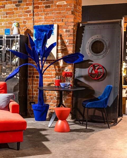 - Awangardowa dekoracja filcowa w kolorze kobaltowym.