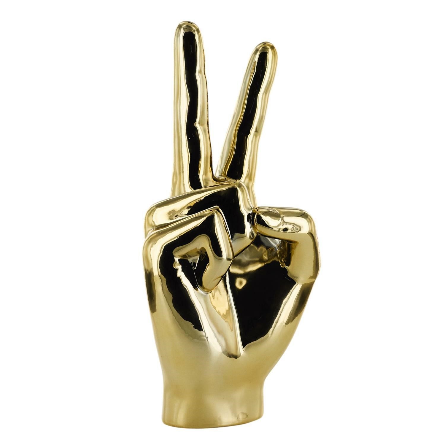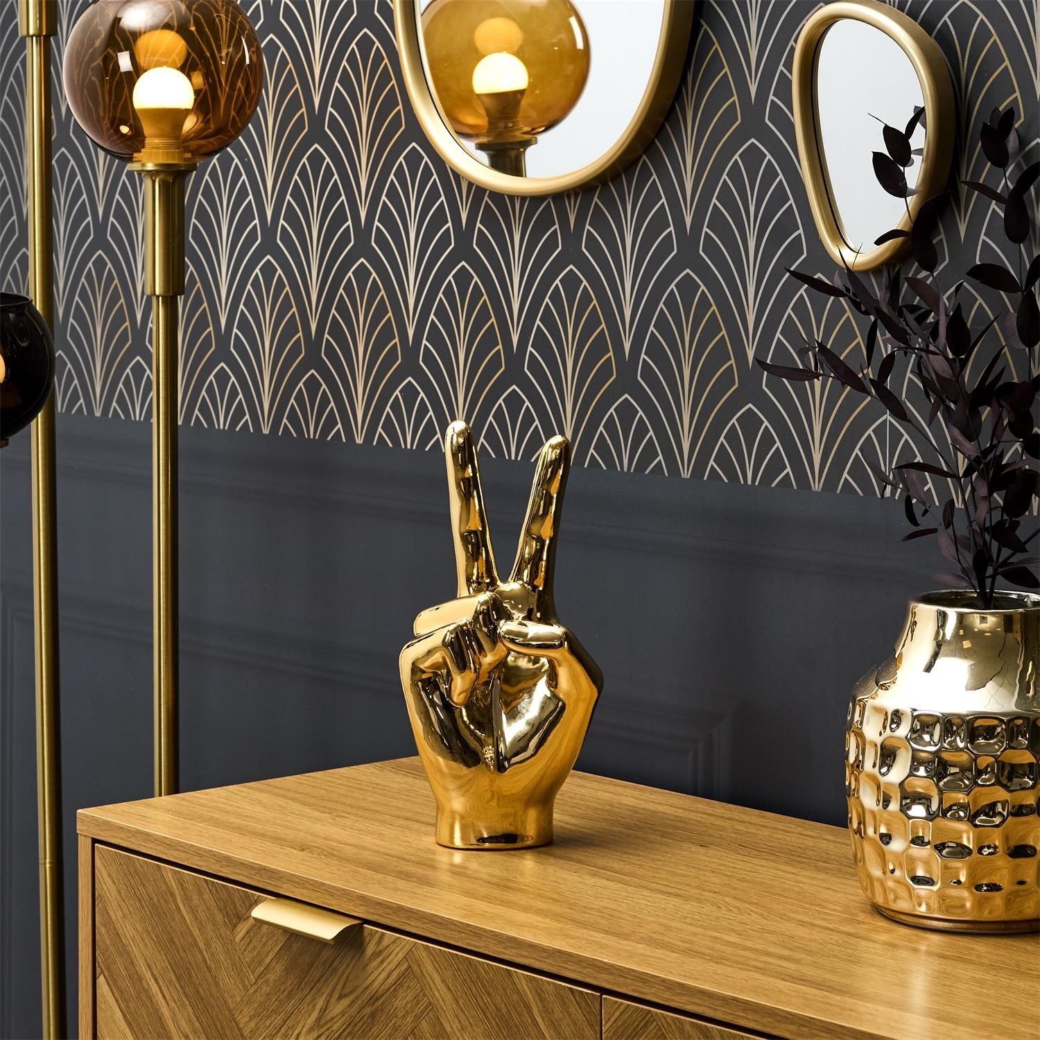 Dekoracyjne figurki dłoni w większym formacie to efektowny akcent, który nadaje wnętrzu charakteru i indywidualności. Złote wykończenie podkreśla elegancki styl dekoracji, czyniąc ją centralnym elementem aranżacji. Idealnie prezentują się na komodach, półkach lub konsolach, wprowadzając do przestrzeni nowoczesny, designerski klimat.
