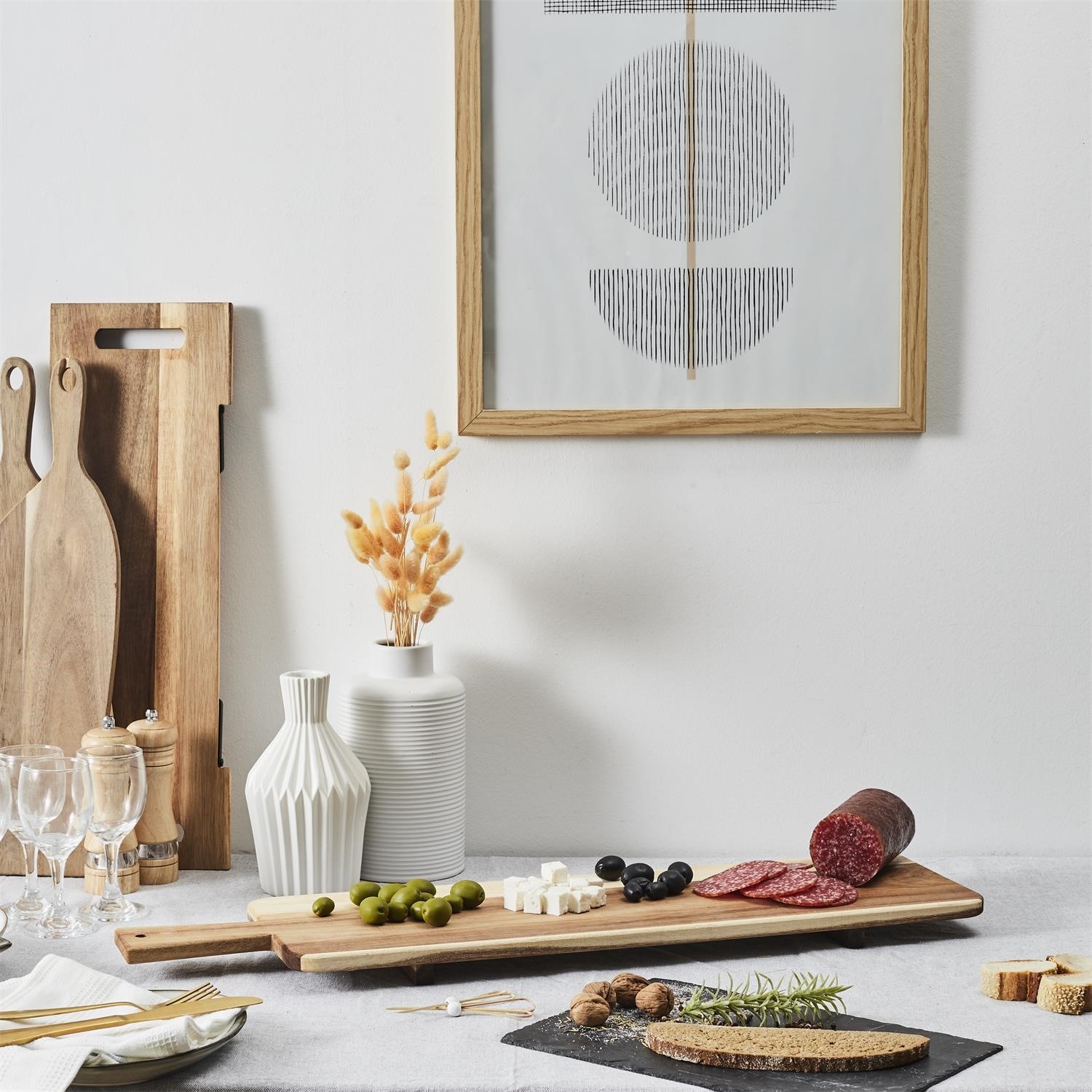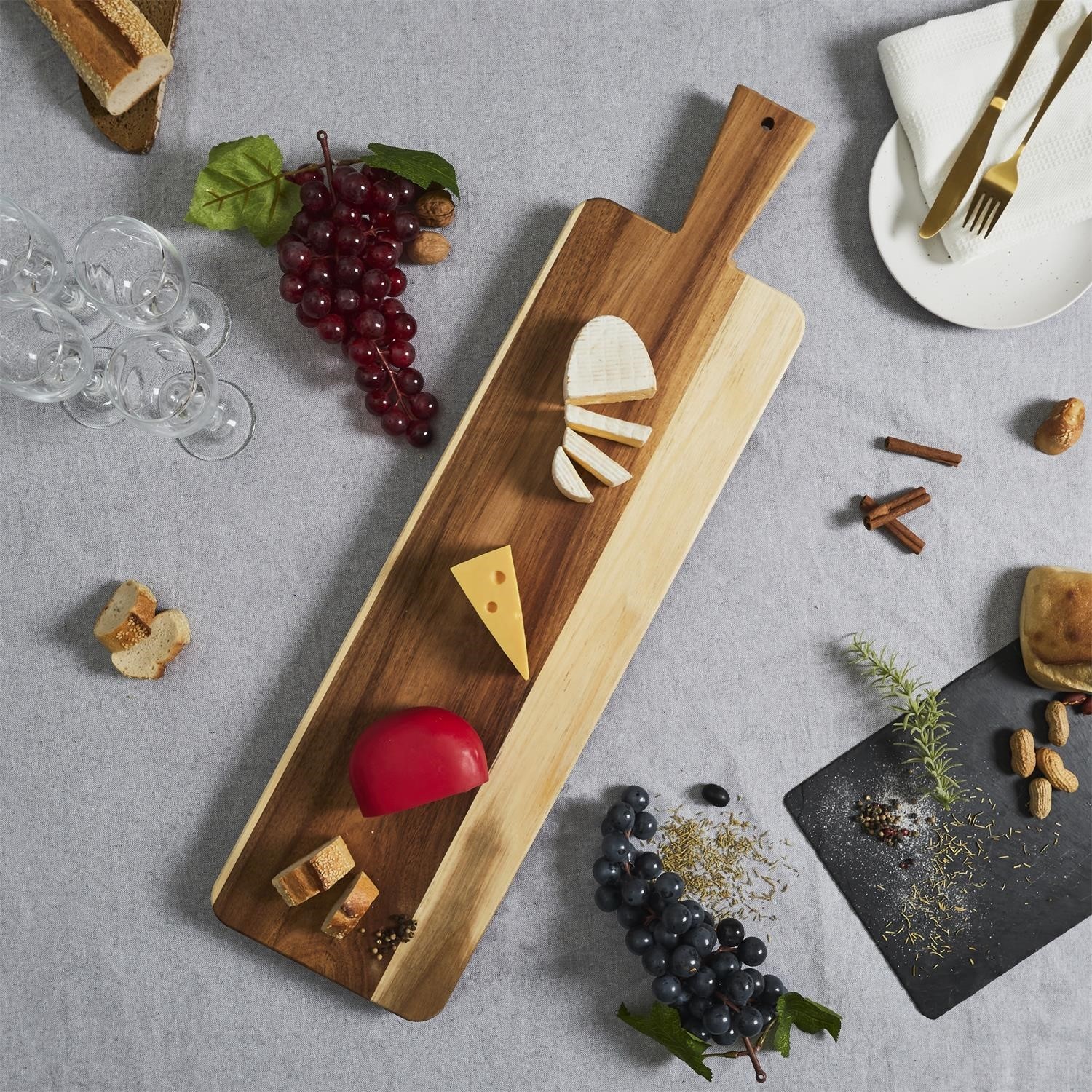 Deska do krojenia z akacji o długości 60 cm to wyjątkowy element, który doskonale łączy funkcjonalność
