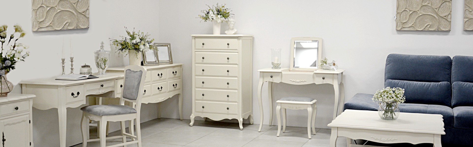 Meble prowansalskie z giętymi nogami, piękne rzeźbienia, pastelowe kolory - takie są cechy charakterystyczne wyjątkowych produktów z kolekcji Dijon. Wykonane z drewna jesionowego i brzozowego z dbałością o najdrobniejsze detale, tak, aby nie zaburzyć lekkości nieprzeciętnych zdobień oraz kształtów. W kolekcji Dijon znajdziesz meble do salonu, jadalni, a także sypialni. Pasują idealnie do wnętrz w stylu prowansalskim i klasycznym.