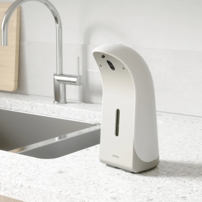 - Nowoczesny dozownik o zakrzywionym kształcie, łączący elegancję i funkcjonalność