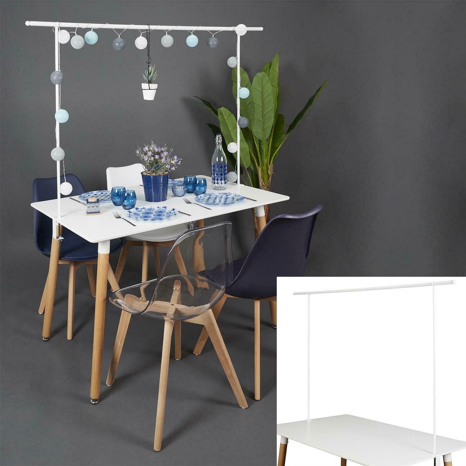 Funkcjonalny wieszak dekoracyjny, montowany do blatu stołu to dodatek, który można wykorzystać na wiele sposobów. Wykonany z metalu, w klasycznym białym kolorze z pewnością przypadnie do gustu wielbicielom pomysłowych elementów dekoracyjnych w aranżacji wnętrz. Można na nim zawiesić stylowe dekoracje bądź wykorzystać w pracowniach krawieckich. Drążek do dekoracji będzie pomocny podczas dekoracji stołu na urodziny, święta lub wieczór panieński. Możemy zawiesić na nim kolorowe lampki lub girlandy z kwiatów. Drążek rozsuwa się od 139 do 250 cm, dzięki czemu możemy dopasować go do każdego stołu. Wymiary opakowania: 21 x 18 x 139 cm