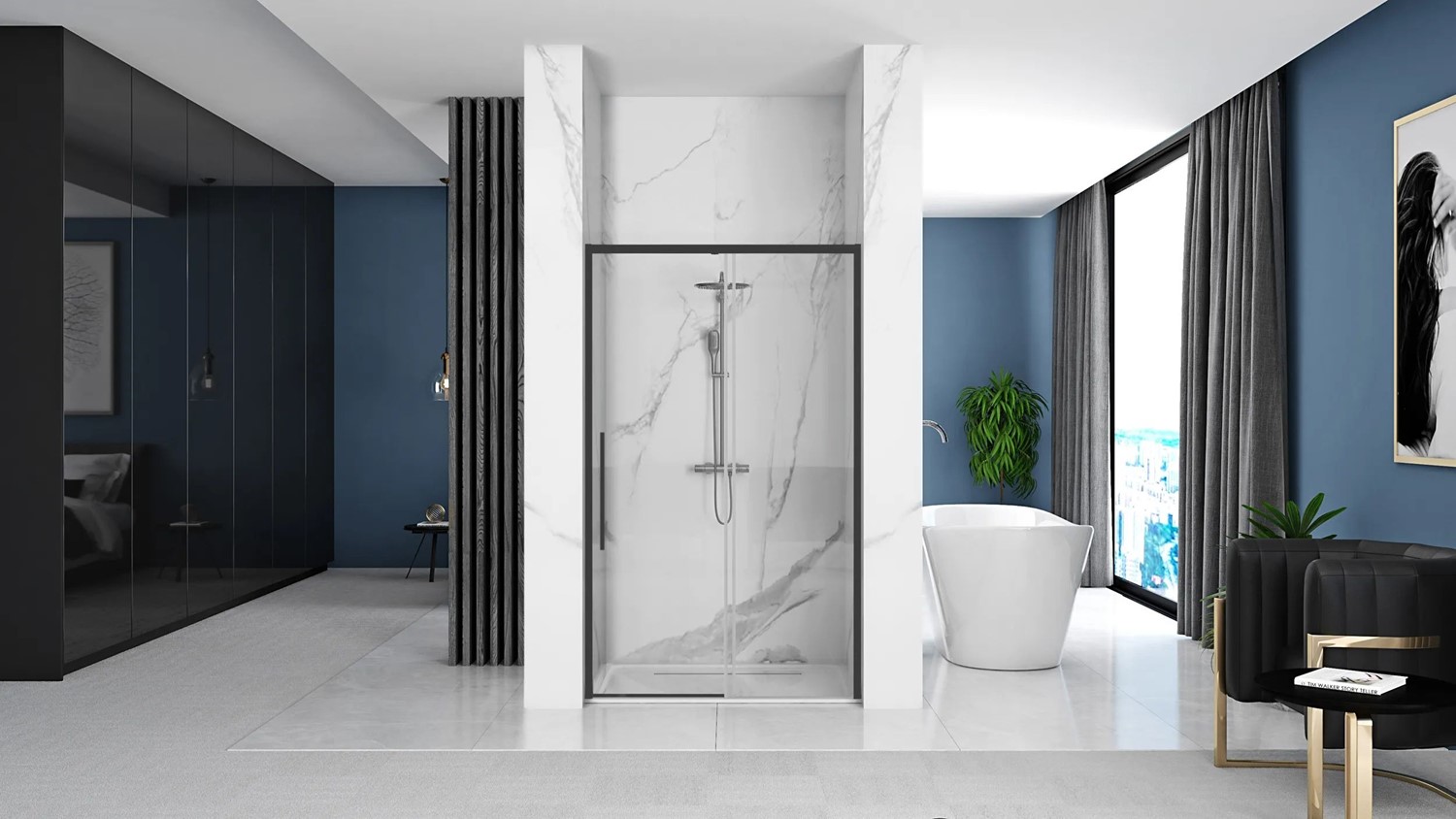 Oferujemy eleganckie i funkcjonalne drzwi prysznicowe, które stanowią doskonałe uzupełnienie każdej nowoczesnej łazienki. Wykonane z najwyższej jakości hartowanego szkła, nasze drzwi gwarantują zarówno trwałość, jak i bezpieczeństwo użytkowania. Dodatkowo, specjalna powłoka Easy Clean sprawia, że szkło pozostaje wolne od osadów kamienia i jest niezwykle łatwe w czyszczeniu, co znacząco ułatwia codzienną pielęgnację łazienki.To idealne rozwiązanie dla każdego, kto chce cieszyć się komfortem i elegancją w swojej łazience przez długie lata.