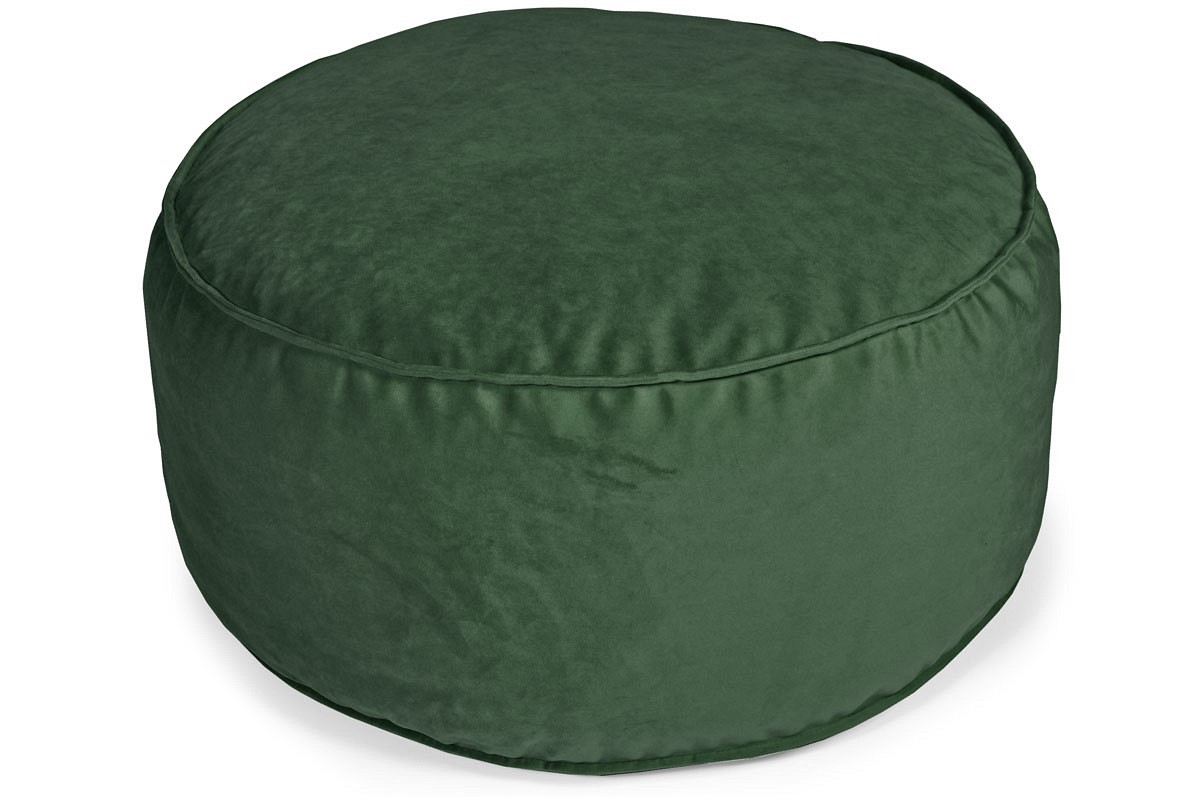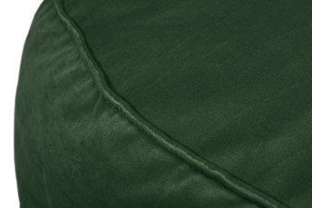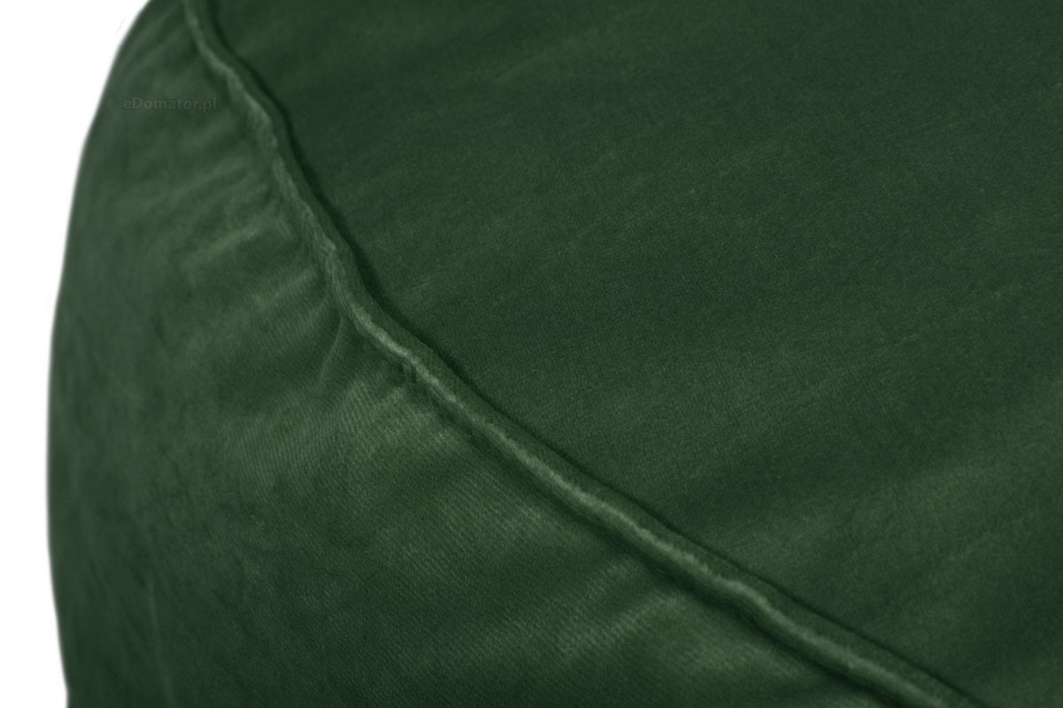 Okrągły puf wykonany z miękkiego aksamitu to idealne dodatkowe siedzisko do niskich ławek. Poduszka może być również stosowana w pokojach rozwojowych, salach zabaw i pokojach dziecięcych. Miękkie wypełnienie poduszki jest bardzo elastyczne, gąbka zawsze wraca do swojego kształtu, a powierzchnia nie odkształca się. Zewnętrzny materiał to zielony aksamitny aksamit, łatwy w czyszczeniu i przyjemny w dotyku. Spód pufy wykonany z tkaniny przypominającej płótno w kolorze szarym. Dolny i górny szew poduszki posiada element ozdobny w postaci lamówek, dzięki czemu wygląda elegancko i oryginalnie.