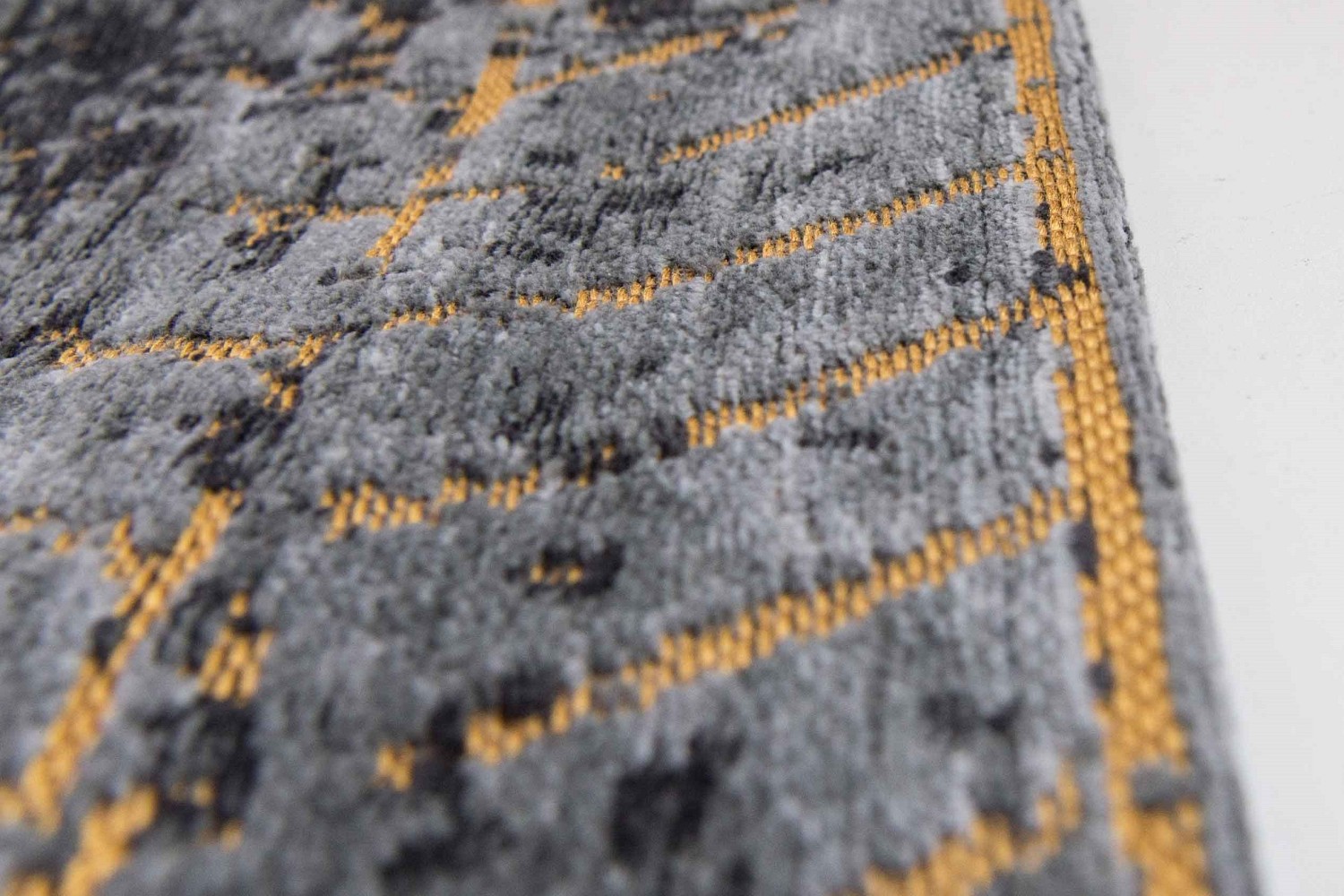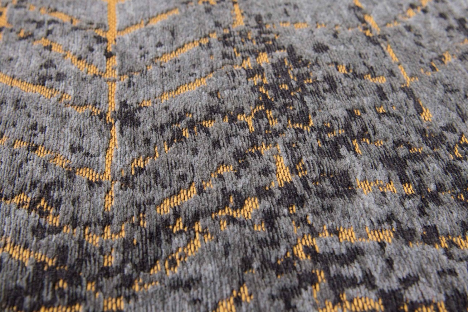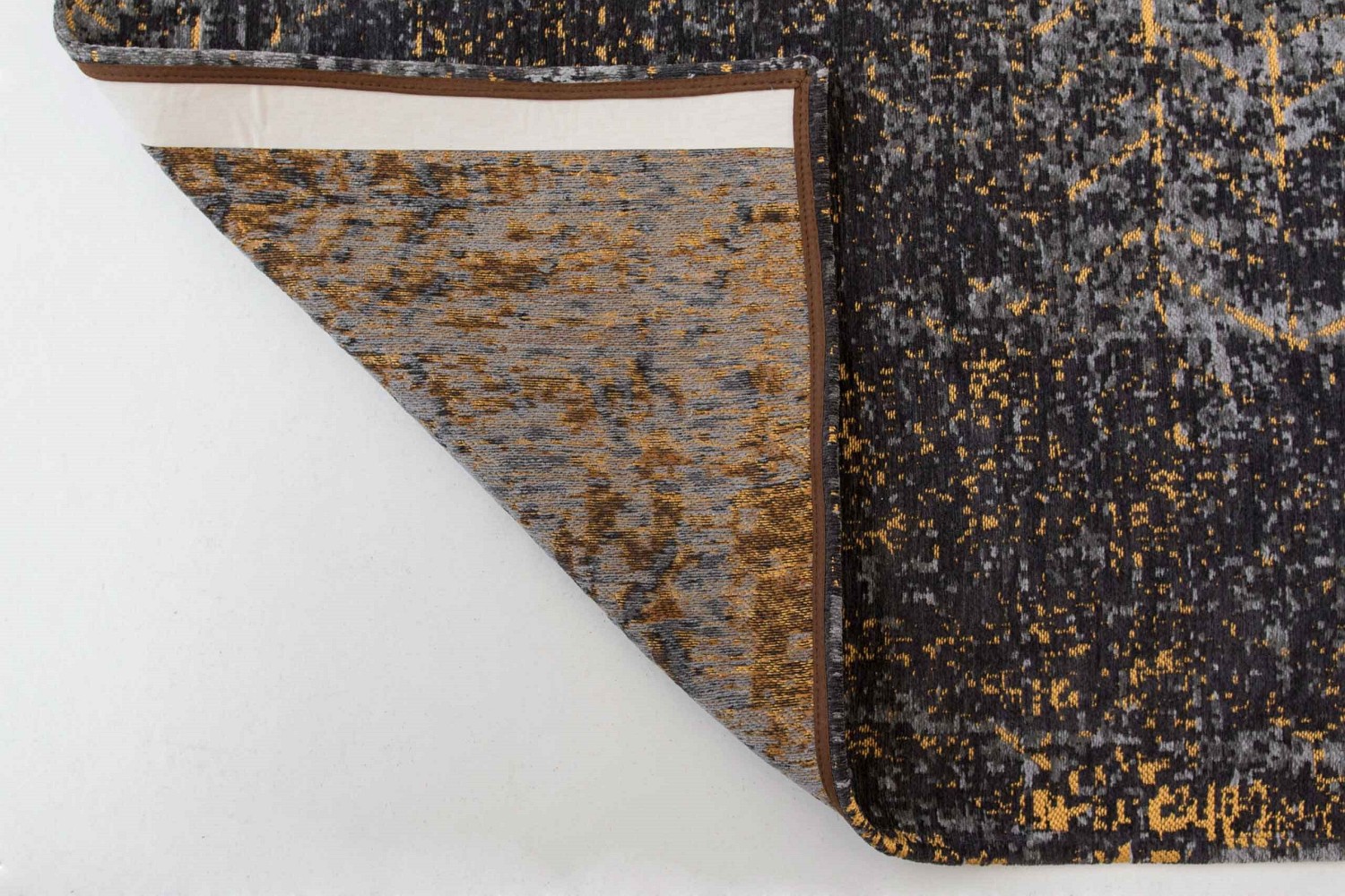 Dywan w jodełkę czarno-złoty - BROADWAY GLITTER 8422, prestiżowej belgijskiej marki Louis De Poortere, z kolekcji Mad Men Jacob's Ladder Wykonany jest w 85% z bawełny szenilowej (z dodatkiem 15% błyszczącego poliestru, aby uzyskać efektowny połysk), dzięki czemu dywan przyjemny w dotyku. poprawia akustykę pomieszczenia, a jego oddychająca struktura zatrzymuje ciepło, zatrzymując kurz i chemikalia, oczyszczając w ten sposób powietrze, którym oddychasz. Płaski splot z gęstym splotem żakardowym pozwala uzyskać bardzo szczegółowy i szczegółowy wzór, zapewniając jednocześnie wytrzymałość i, bardziej niż grube dywany, odporność na wypaczanie się pod ciężarem mebli. Ponadto dywan jest łatwy w utrzymaniu czystości dzięki niskiemu włosiu, które łatwo się odkurza. Dzięki gumowej powłoce na spodzie maty mata jest stabilna i nie przesuwa się. Materiał Mat charakteryzuje się niską palnością, a jednocześnie wysoką przewodnością cieplną (certyfikat), dzięki czemu doskonale sprawdza się zarówno w pomieszczeniach kominkowych, jak i ogrzewaniu podłogowym.