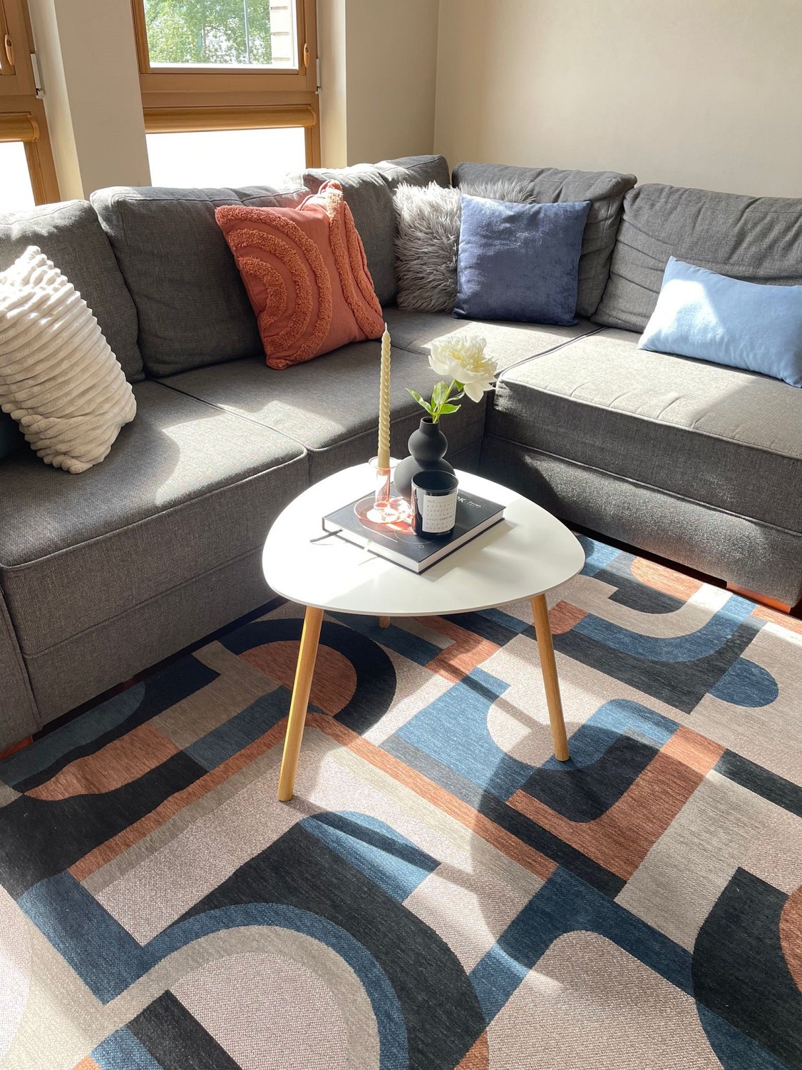 Dywany Camel Blue - marki Louis De Poortere z kolekcji Module, to piękno nowoczesnej geometrii, która nada Twojemu wnętrzu niepowtarzalny wygląd. Doskonale sprawdza się w neutralnych wnętrzach, jak również w przedpokojach czy sypialniach. Wykonane są w 100% z poliestru, dzięki czemu dywan jest przyjemny w dotyku, poprawia akustykę, zatrzymuje kurz i chemikalia, przy czym oczyszcza powietrze, którym oddychasz. Jego oddychająca struktura utrzymuje ciepło w pomieszczeniu. Jest tkany na płasko, metodą dziania żakardowego, co pozwala na bardzo szczegółowe wzory. Jednocześnie zapewnia trwałość i większą odporność na odkształcenia pod ciężarem mebla w porównaniu do grubych dywanów. Dywany są łatwe do utrzymania w czystości dzięki niskiemu włosiu i można je łatwo odkurzać. Dzięki lateksowej powłoce na spodniej stronie dywanu jest stabilny i nie przesuwa się. Materiał, z którego wykonany jest dywan, charakteryzuje się niską palnością przy zachowaniu wysokiej przewodności cieplnej (potwierdzonej certyfikatem).