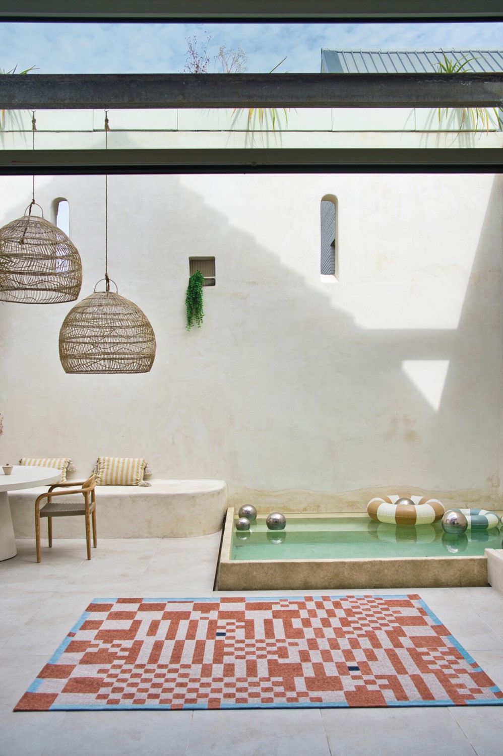 Dywan Chess Nude od belgijskiej marki Louis De Poortere to geometryczny różowy akcent, który wprowadza do wnętrza równowagę między formą, kolorem i funkcjonalnością. Wykonany w 100% z poliestru, cechuje się płaskim tkaniem i gęstym splotem żakardowym, co zapewnia trwałość i odporność na zużycie. Poliester jest wyjątkowo wytrzymały i łatwy w recyklingu, co sprzyja ochronie środowiska. Dywan Chess Nude jest prosty w utrzymaniu czystości dzięki niskiemu runu, odporny na plamy i blaknięcie, a także nadaje się do prania w pralce. Jego antypoślizgowa baza zapewnia stabilność, a właściwości antyalergiczne i certyfikat OEKO-TEX 100 gwarantują bezpieczeństwo. Idealny do sypialni, salonu, biura czy hotelu, dywan ten jest także przyjazny dla zwierząt. Dzięki niskiej palności i efektywnej dystrybucji ciepła, doskonale sprawdzi się w pomieszczeniach z kominkiem lub ogrzewaniem podłogowym.