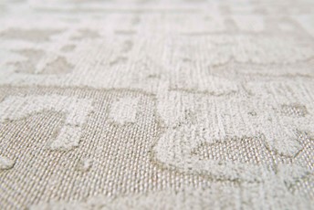 Wykonany jest w 100% z poliestru, dzięki czemu dywan jest przyjemny w dotyku. Tkane na płasko z gęstymi szwami metodą splotu żakardowego można uzyskać bardzo drobny i szczegółowy wzór, zapewniając jednocześnie trwałość i większą odporność na odkształcenia pod ciężarem mebli niż grube dywany. Ponadto dywan jest łatwy do utrzymania w czystości dzięki niskiemu włosiu i można go łatwo odkurzać. Dywan jest stabilny i nie przesuwa się dzięki gumowej powłoce na spodzie dywanu.