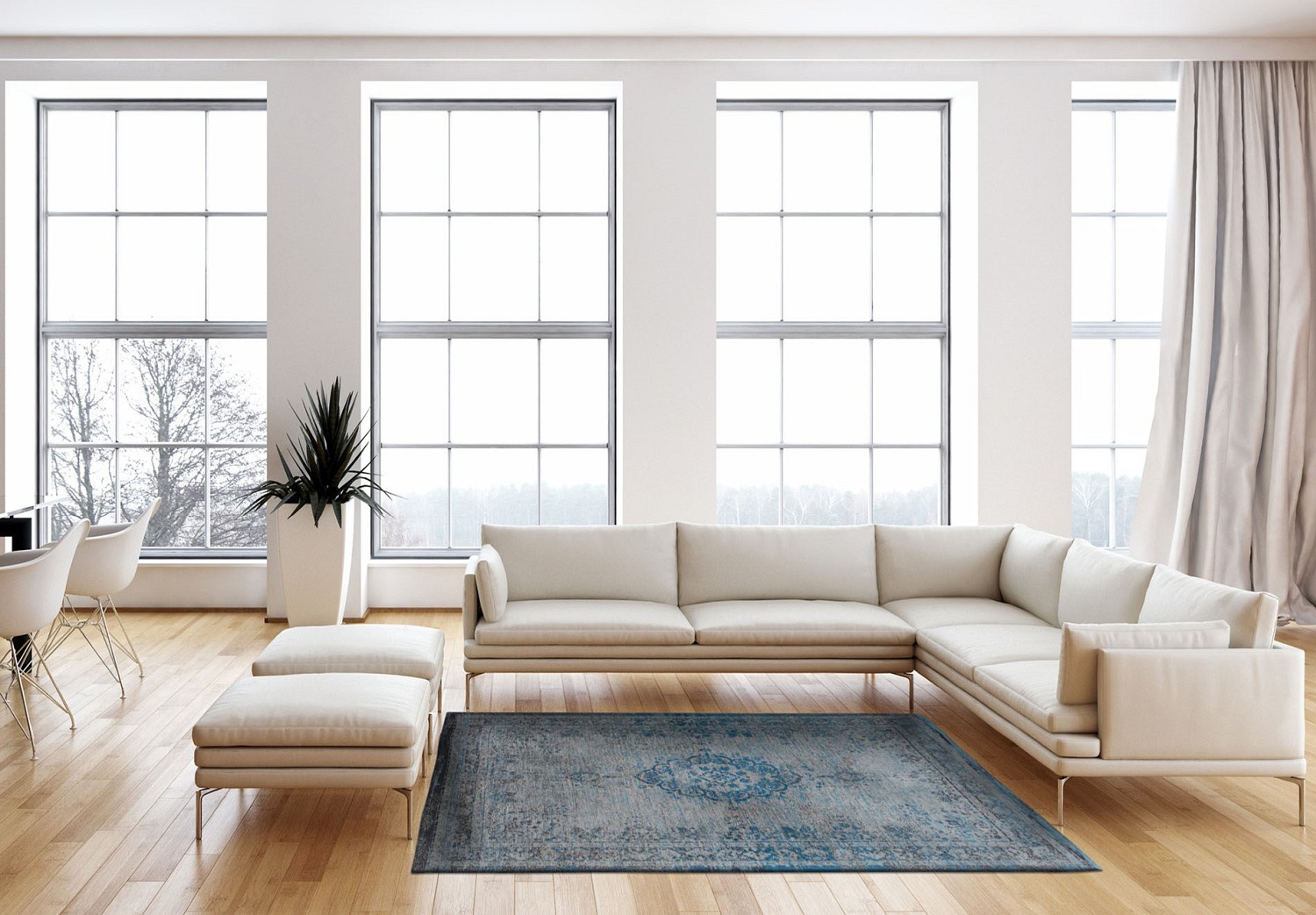 Niebiesko-szary klasyczny dywanik vintage - GREY TURQUOISE 8255, prestiżowej belgijskiej marki Louis De Poortere, z kolekcji Fading World Medallion Wykonany w 100% z bawełny szenilowej, która sprawia, że dywan jest przyjemny w dotyku, poprawia akustykę podłogi. do pomieszczenia, a jego oddychająca struktura zatrzymuje ciepło, wiążąc kurz i chemikalia, oczyszczając w ten sposób powietrze, którym oddychasz. Tkanie płaskie z gęstym splotem żakardowym pozwala uzyskać bardzo szczegółowy i szczegółowy wzór, zapewniając jednocześnie wytrzymałość i, bardziej niż grube dywany, odporność na odkształcenia pod ciężarem mebli. Ponadto dywan jest łatwy w utrzymaniu czystości dzięki niskiemu włosiu, które łatwo się odkurza. Dzięki gumowej powłoce na spodzie maty mata jest stabilna i nie przesuwa się. Materiał Mat charakteryzuje się niską palnością, a jednocześnie wysoką przewodnością cieplną (certyfikat), dzięki czemu doskonale sprawdza się zarówno w pomieszczeniach kominkowych, jak i ogrzewaniu podłogowym.
