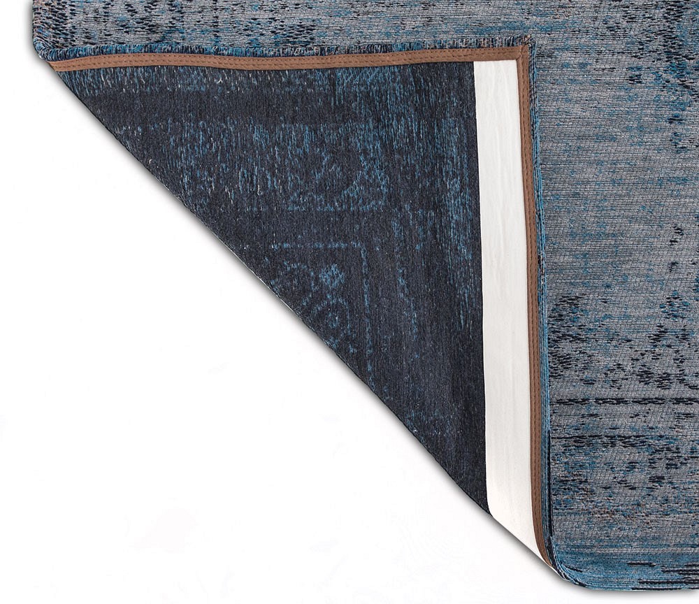 Niebiesko-szary klasyczny dywanik vintage - GREY TURQUOISE 8255, prestiżowej belgijskiej marki Louis De Poortere, z kolekcji Fading World Medallion Wykonany w 100% z bawełny szenilowej, która sprawia, że dywan jest przyjemny w dotyku, poprawia akustykę podłogi. do pomieszczenia, a jego oddychająca struktura zatrzymuje ciepło, wiążąc kurz i chemikalia, oczyszczając w ten sposób powietrze, którym oddychasz. Tkanie płaskie z gęstym splotem żakardowym pozwala uzyskać bardzo szczegółowy i szczegółowy wzór, zapewniając jednocześnie wytrzymałość i, bardziej niż grube dywany, odporność na odkształcenia pod ciężarem mebli. Ponadto dywan jest łatwy w utrzymaniu czystości dzięki niskiemu włosiu, które łatwo się odkurza. Dzięki gumowej powłoce na spodzie maty mata jest stabilna i nie przesuwa się. Materiał Mat charakteryzuje się niską palnością, a jednocześnie wysoką przewodnością cieplną (certyfikat), dzięki czemu doskonale sprawdza się zarówno w pomieszczeniach kominkowych, jak i ogrzewaniu podłogowym.