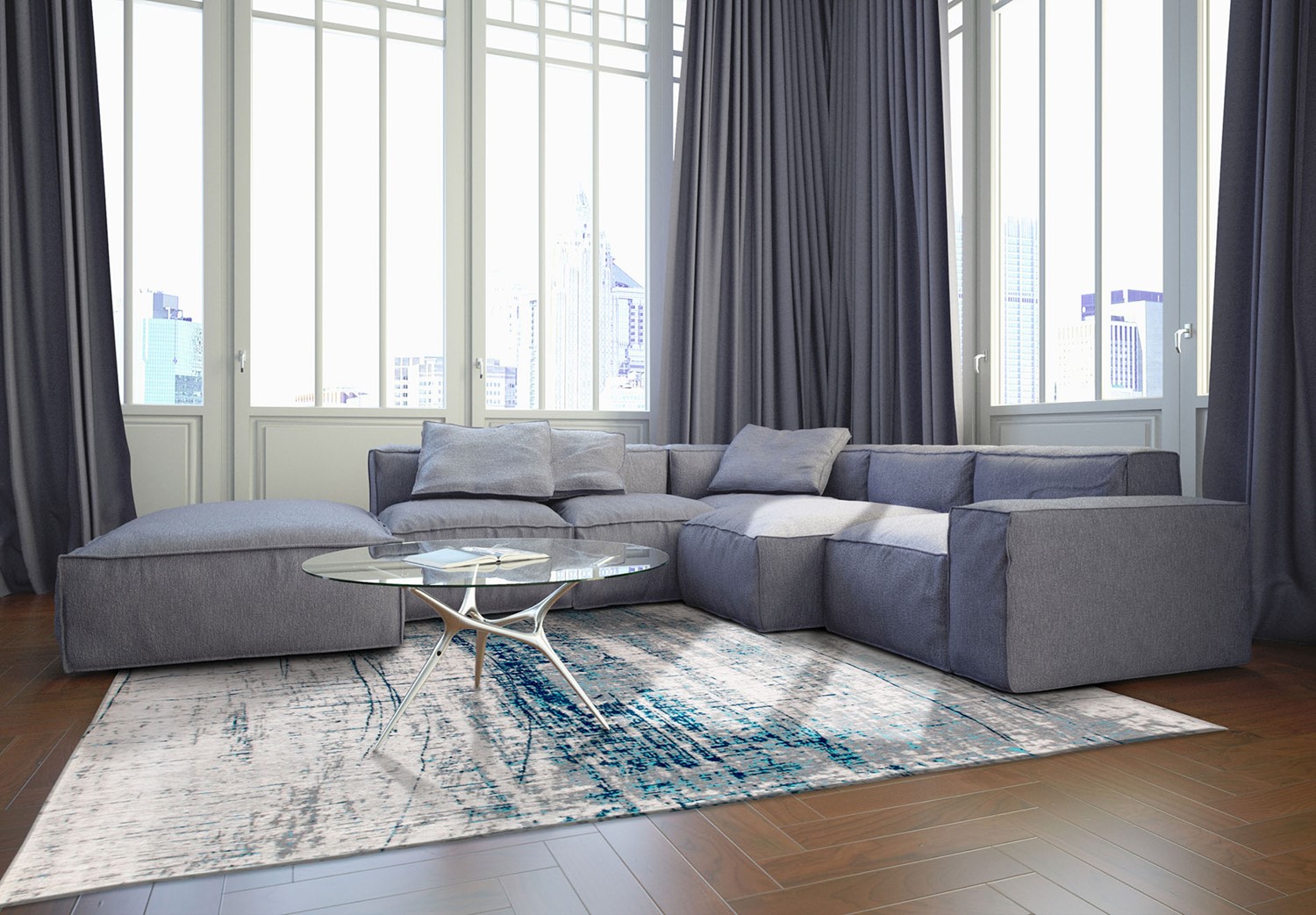 Dywan Griff Bronx Azurite belgijskiej marki Louis De Poortere to nowoczesny biało-niebieski dywan, który wprowadza do wnętrza poczucie przytulności i stylu vintage inspirowanego Nowym Jorkiem lat 60. Design dywanu łączy proste linie z przerywanymi wzorami, tworząc efektowną kompozycję mat i błyszczącej przędzy, która oddaje energię i dynamikę tamtych czasów. Poliester, z którego wykonano dywan, jest ceniony za swoją trwałość i odporność na codzienne zużycie, a także za możliwość recyklingu, co wpisuje się w trend zrównoważonego rozwoju. Dywan charakteryzuje się łatwością w utrzymaniu czystości dzięki niskiemu runu, który nie zatrzymuje brudu.